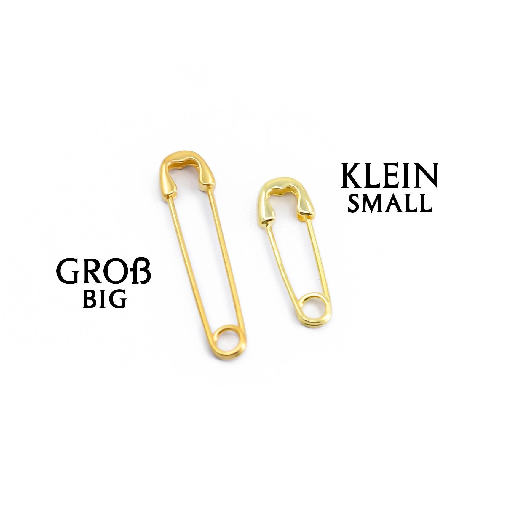 Safety Pin Earrings Gold, Safety Pin Studs 925 Silver 14K gold plat...