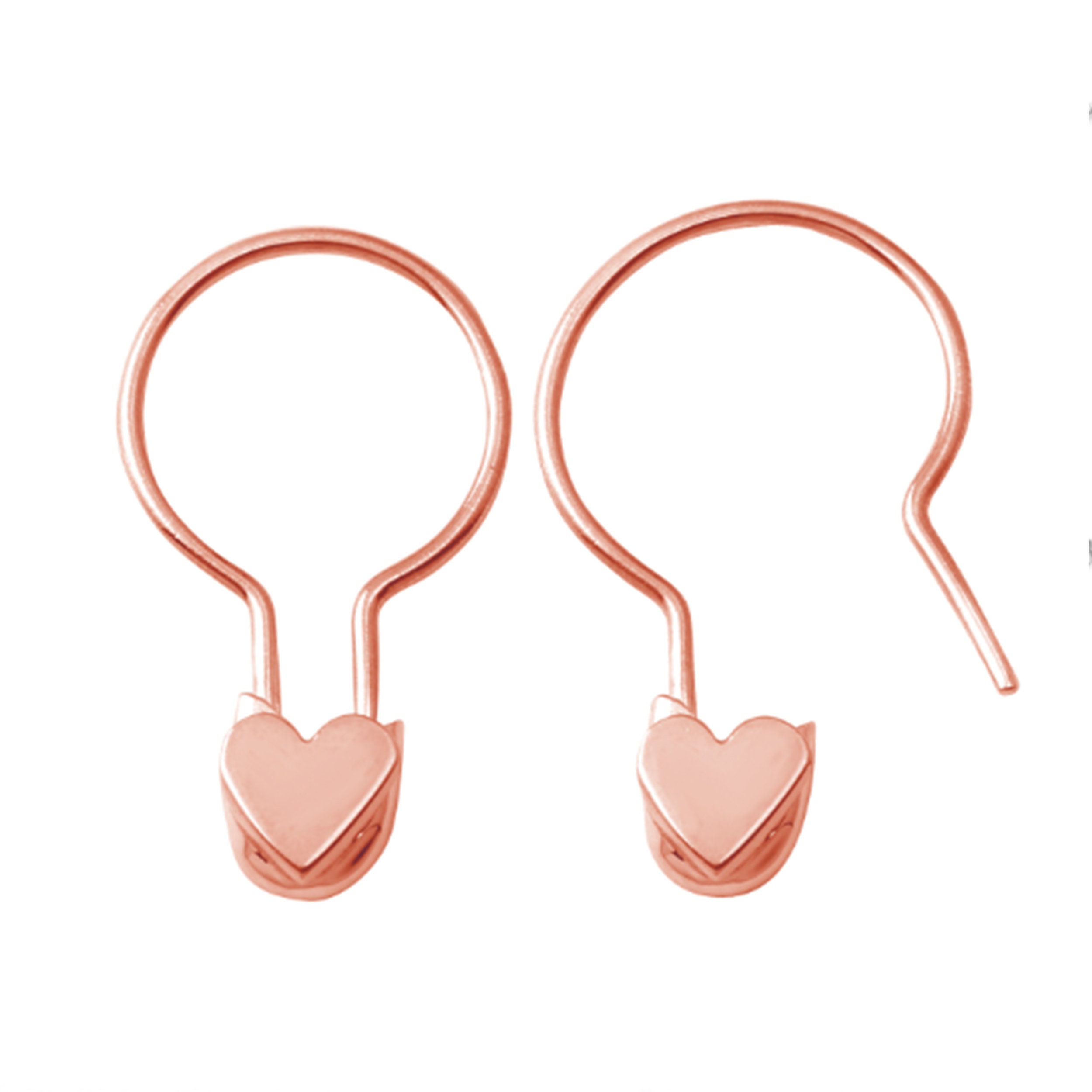 14k Heart Safety Pin Hoop Earring, Safety Pin Hoop Earring, Heart S...