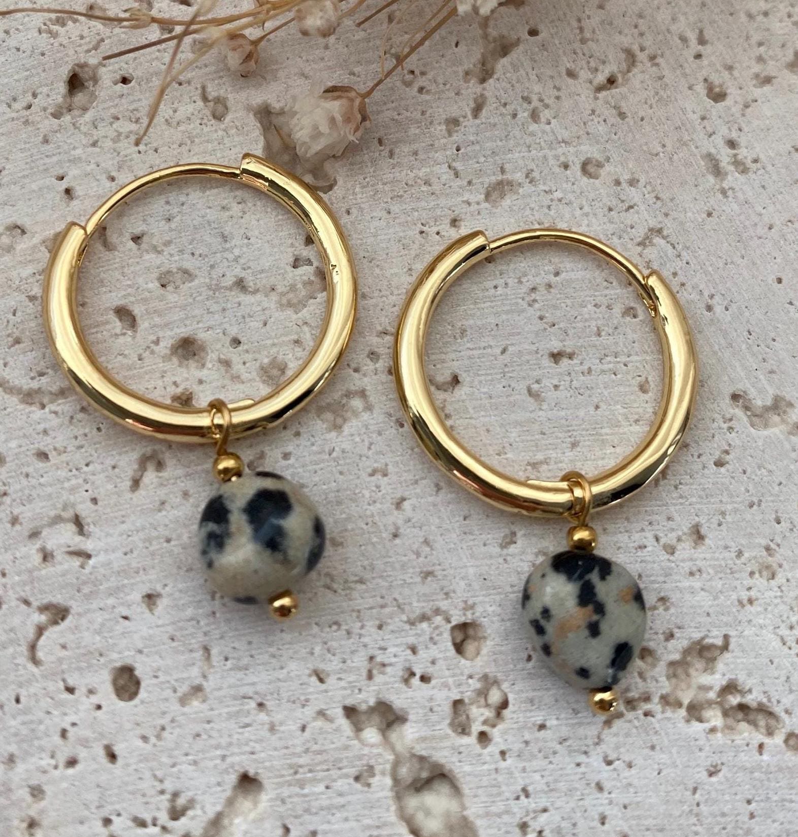Hoop earrings gold-plated 18k real gold plating gold jasper natural...