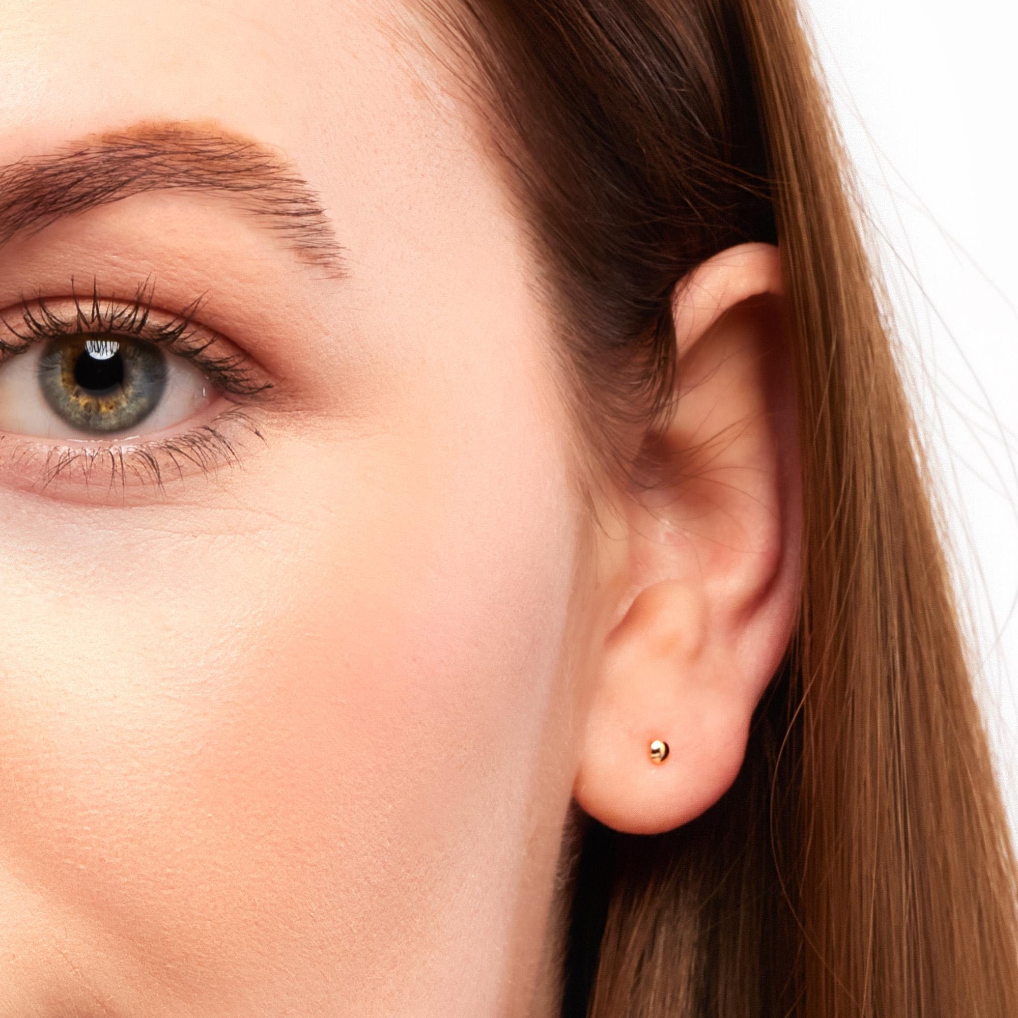 Tiny 14K Gold disk stud earrings. These 2mm minimalist earrings are perfect for everyday or for any ...