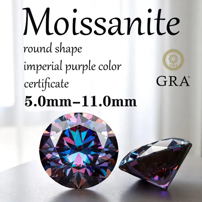 Round Cut Moissanite Imperial Purple Color DIY Ring Necklace Earrings Main Materials Charms Gemstone...