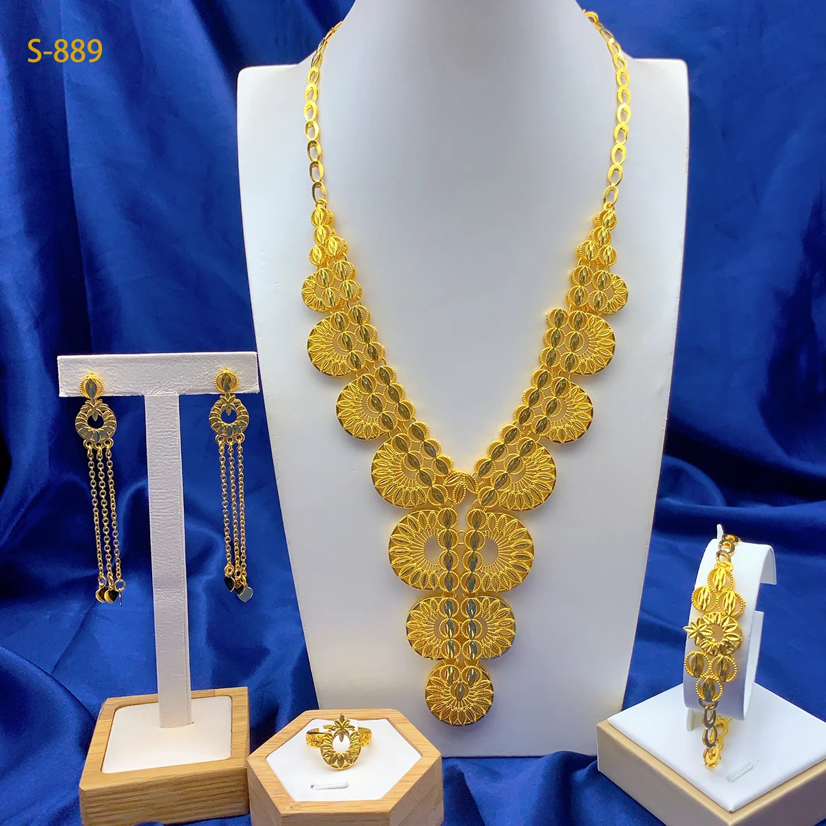 New 24K Alloy Dubai Jewelry Set For Women Necklace Earrings Indian ...