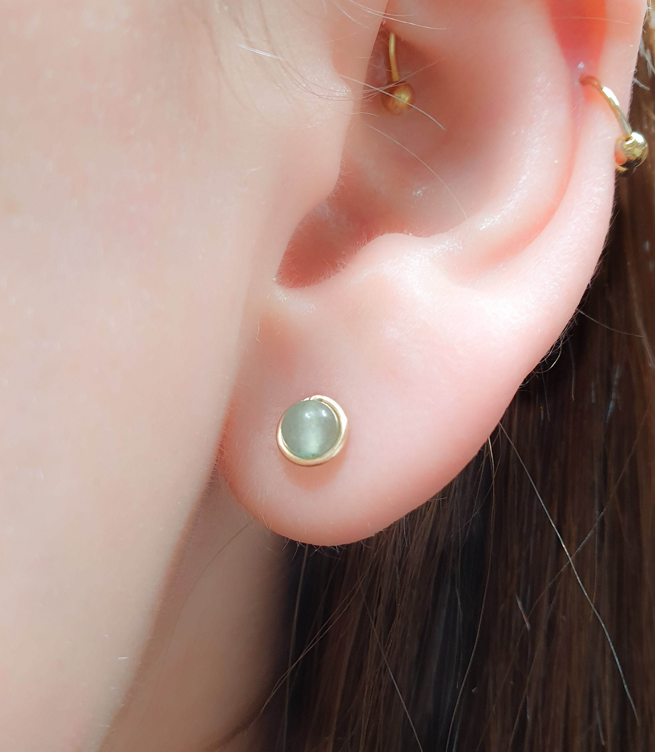 DAINTY JADE STUDS EARRINGS Natural Jade Earrings - Jade Studs Earrings - Natural Jade Studs - Light ...