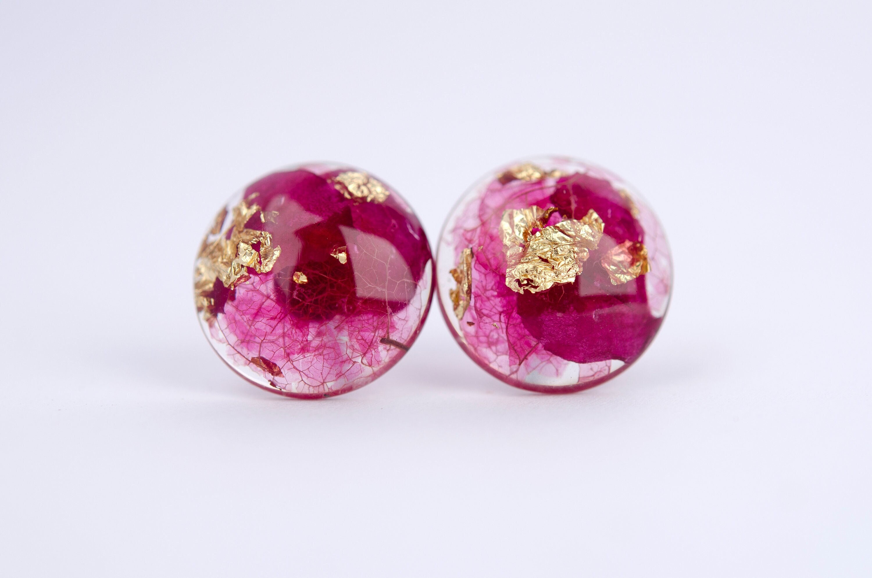 Introducing Pink Petunia Resin Earrings Materials: Resin, pink petunia, skeletonized leaf, gold flak...