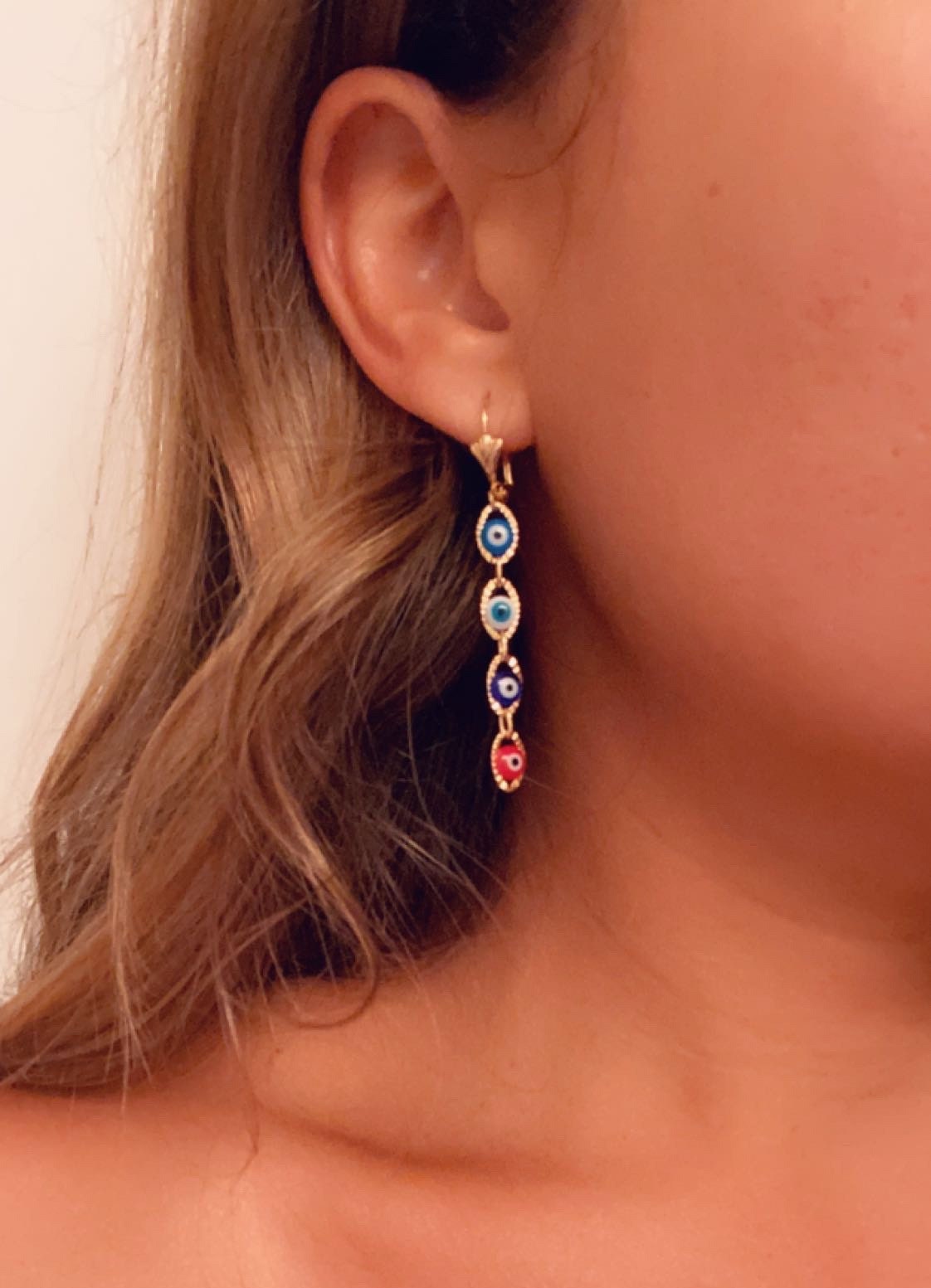 Greek Evil eye drop earrings, Greek evil eye earrings, Gold drop eye earrings,Evil eye jewelry, Evil...