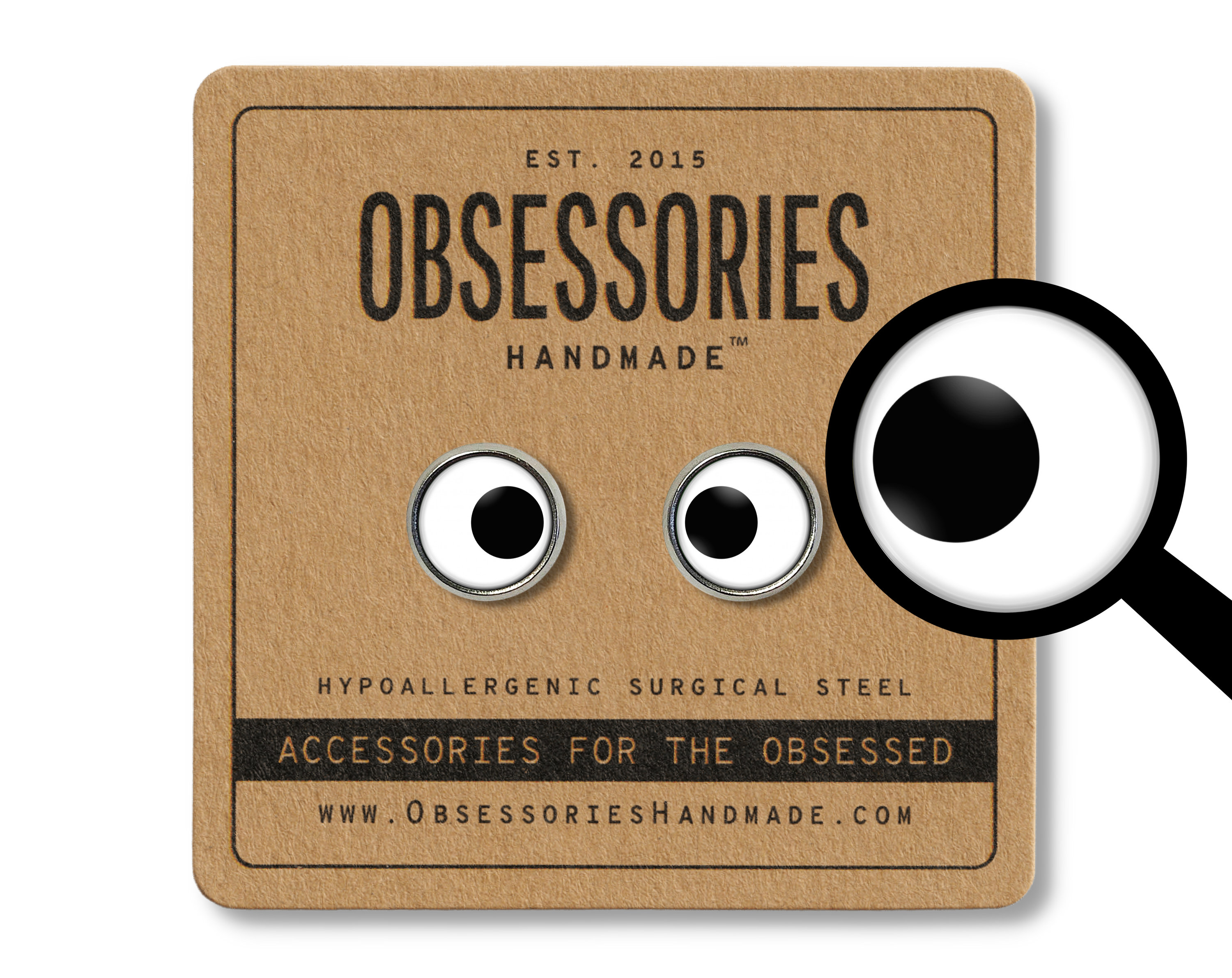 Handmade Googly Eye cabochon stud earrings. High resolution photo printed on glossy photo paper and ...