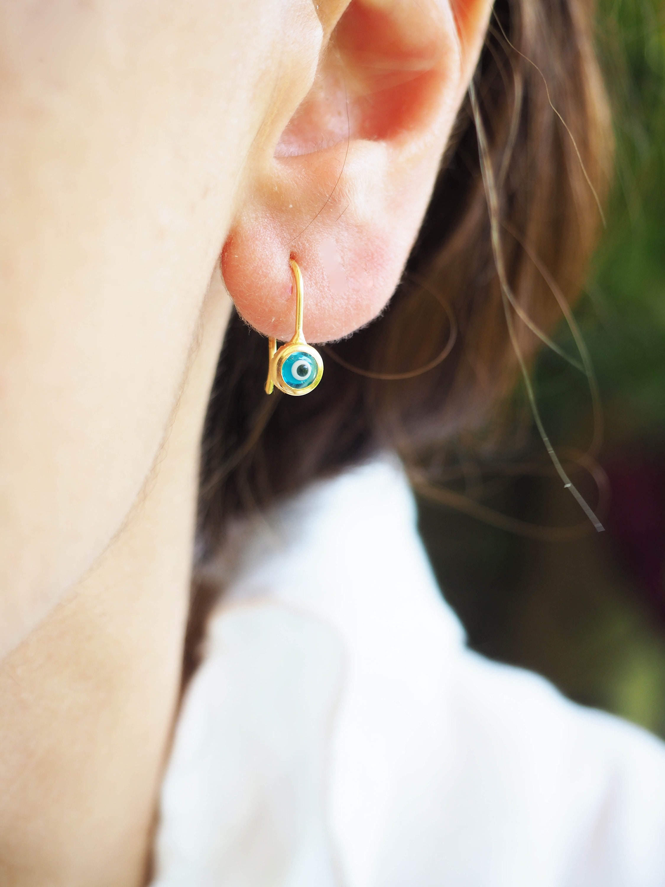 18K Dainty Evil Eye Earrings,Lucky Eye Earrings,Greek Eye Earrings ...