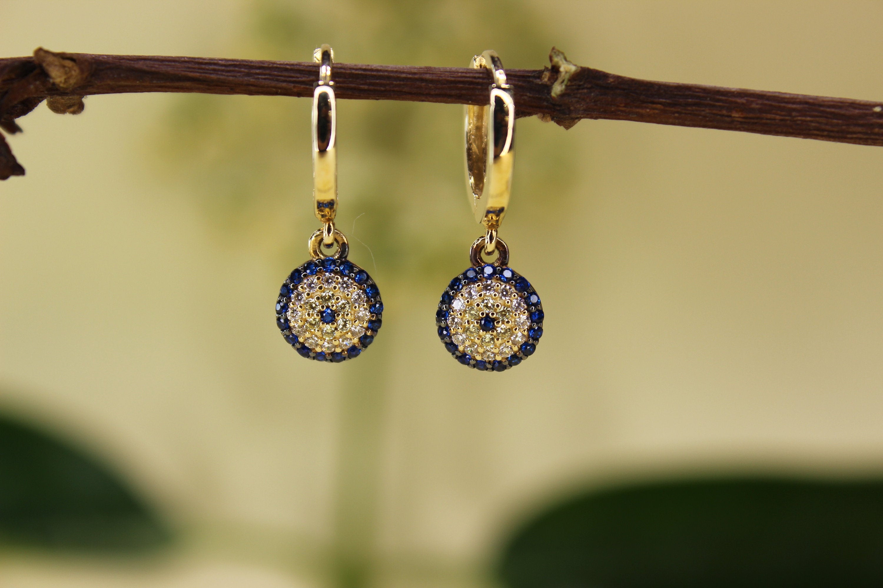Evil Eye Earrings, Turkish Eye Jewelry, Nazar Earrings, Blue Eye Ea...
