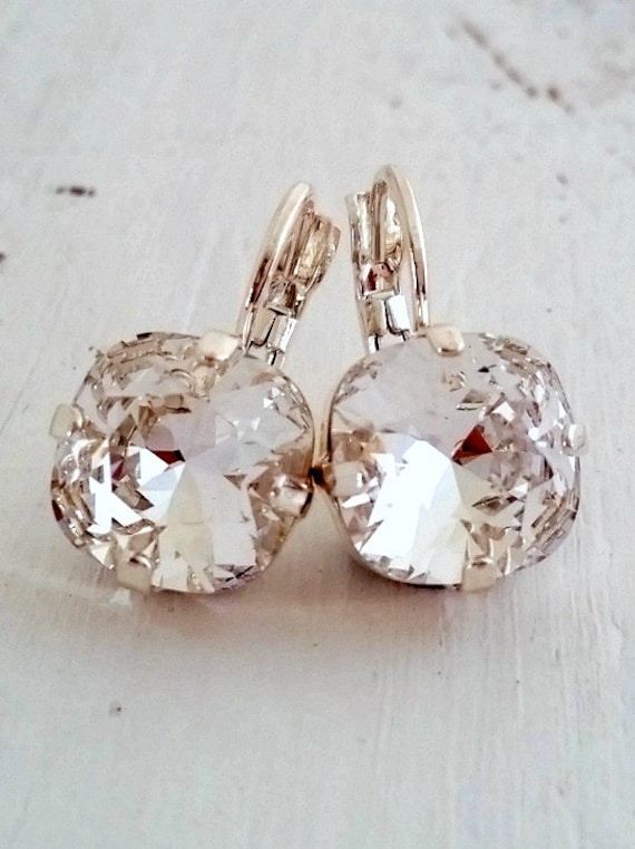 Clear crystal earrings,clear crystal Drop/Stud earrings,10/12 mm st...