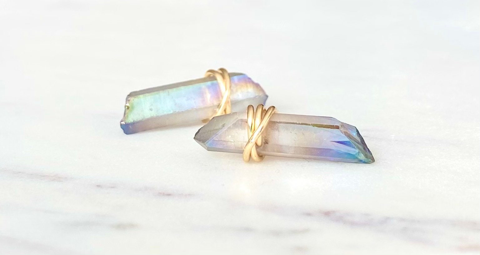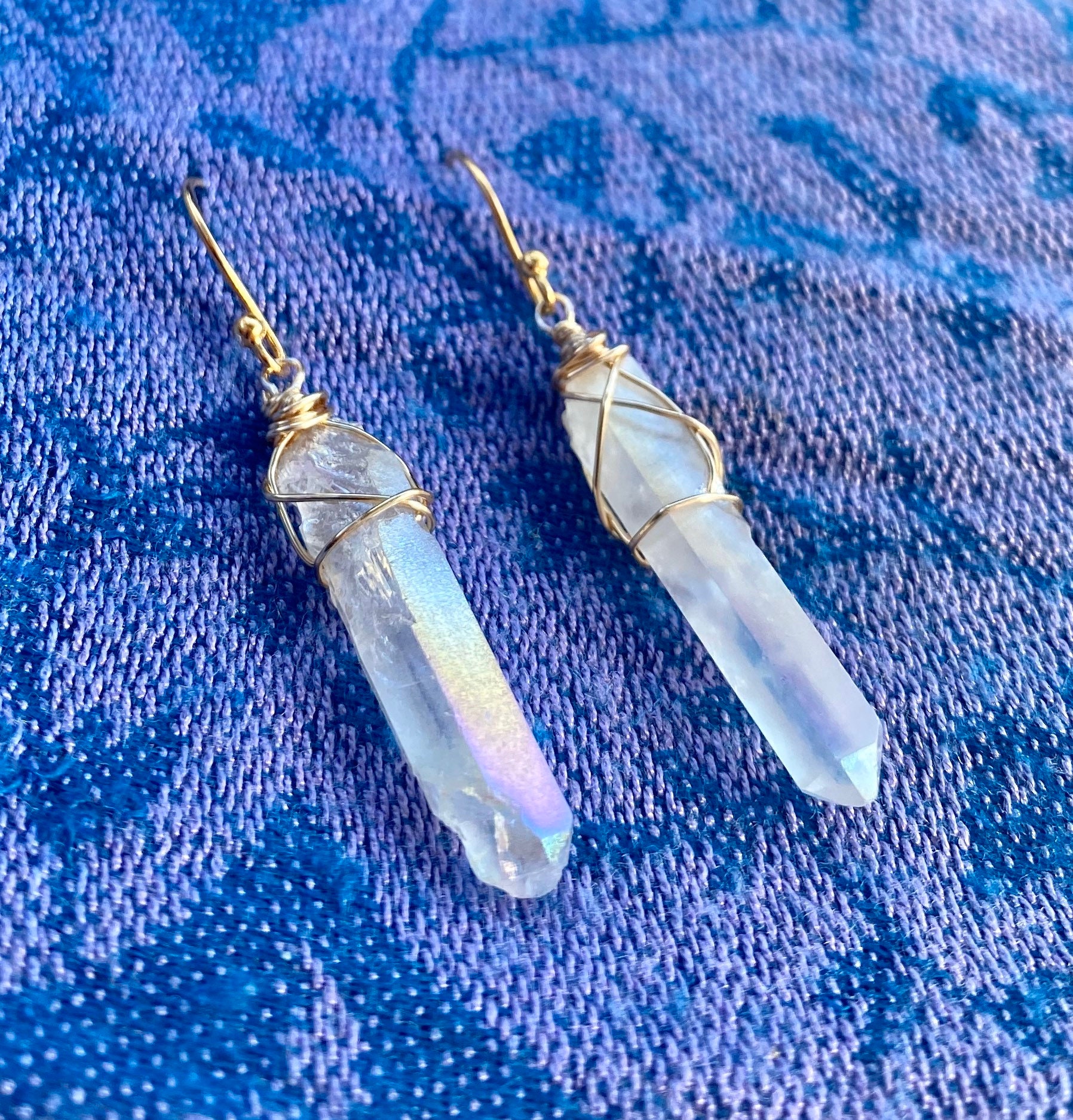 Crystal point earrings, Angel Aura earrings, Small crystal point, R...