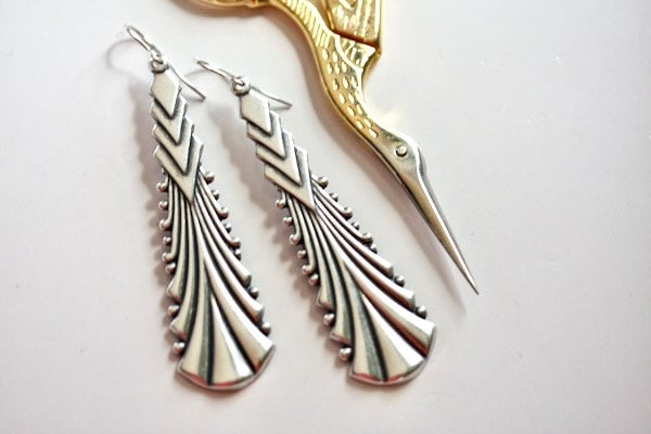 Long silver Art Deco earrings, silver lightning bolt earrings, very...