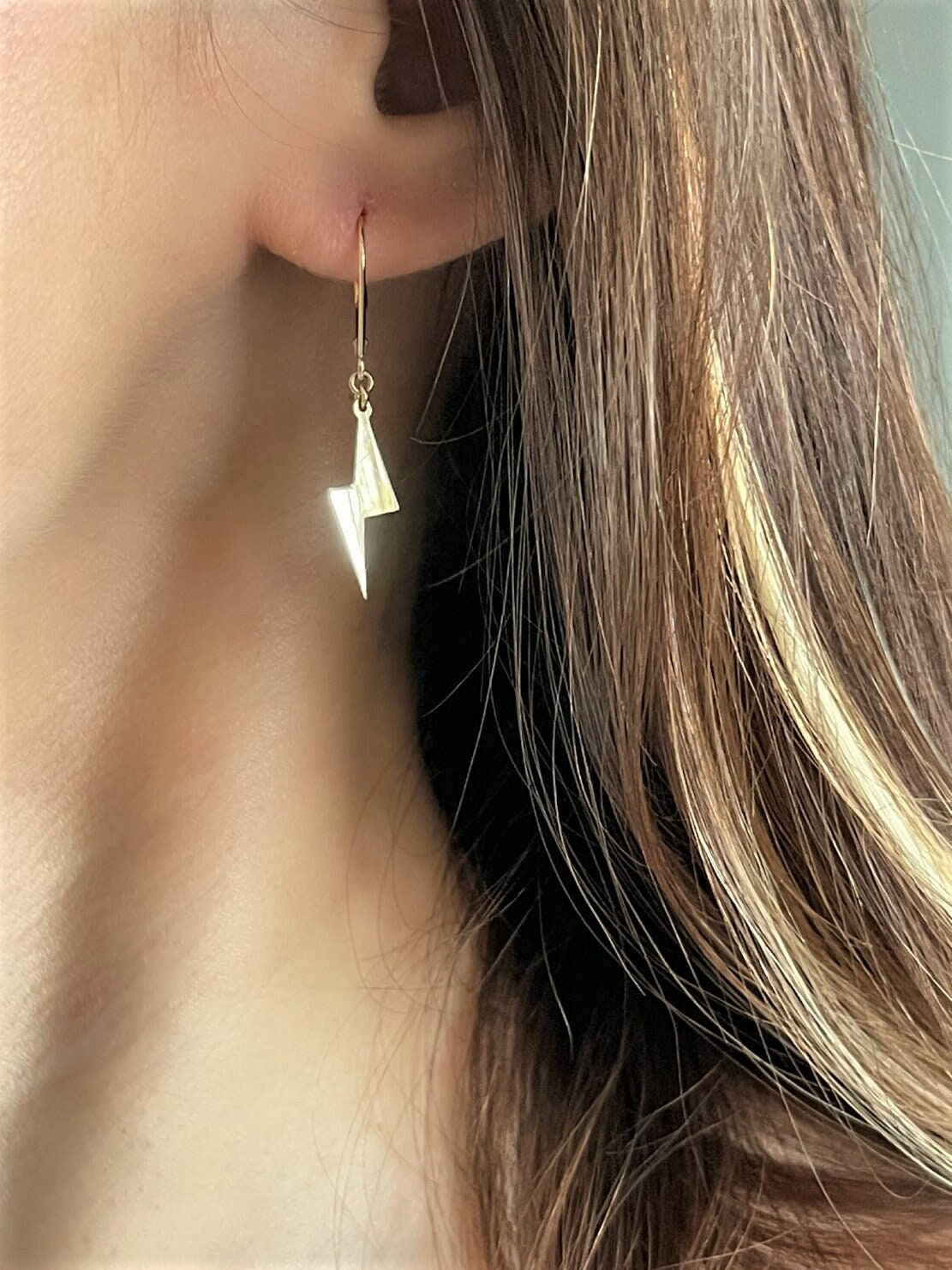 "This gold lightning bolt hoop earring is designed for those who like their jewelry to carry me...