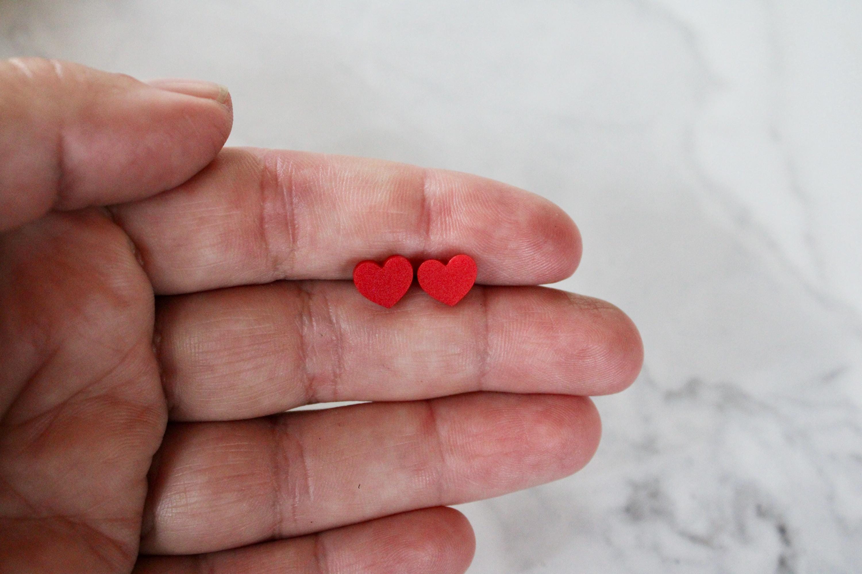 tiny red heart earring, heart stud, gift, gift for her, red heart s...
