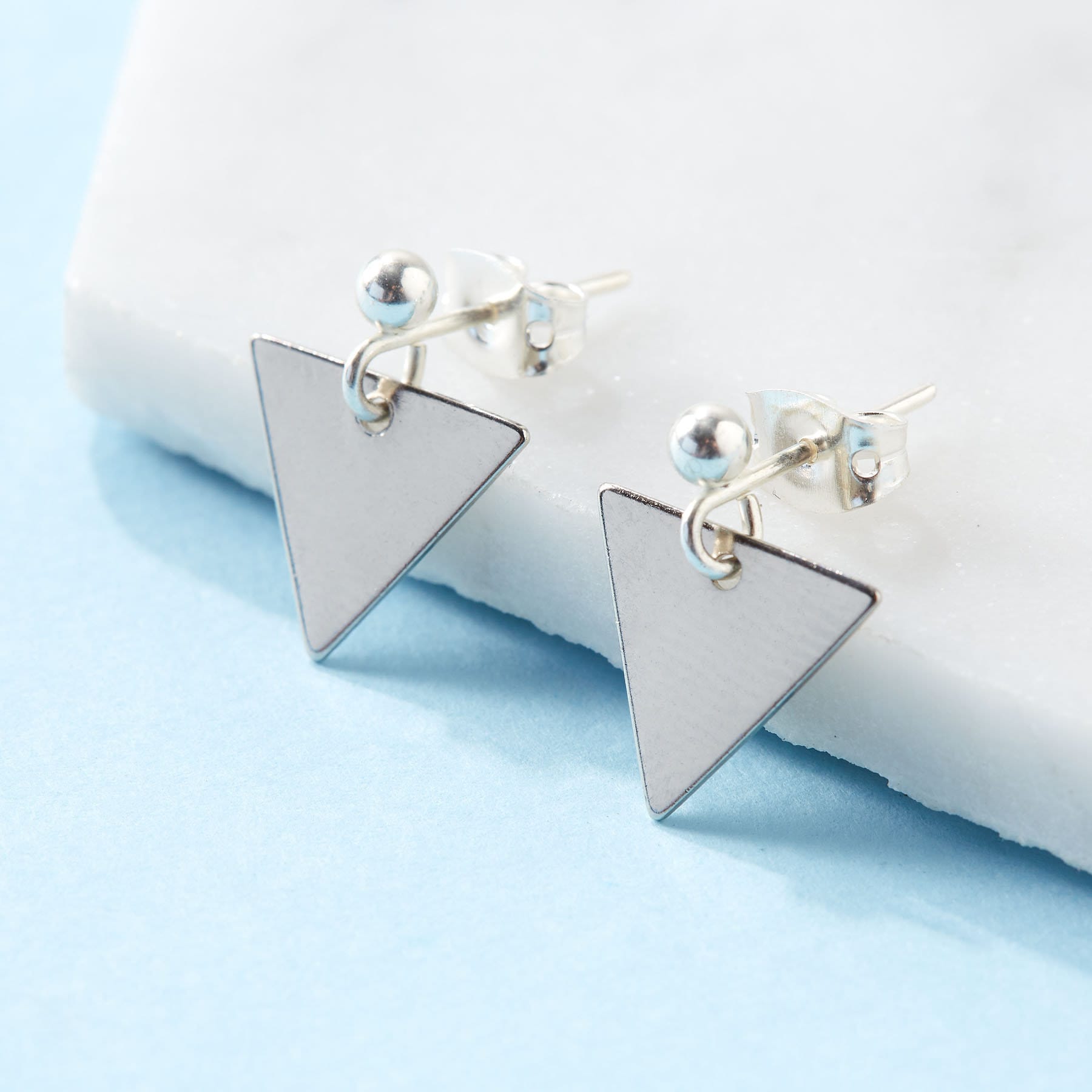 Silver triangle earrings | Minimalist silver earrings | Geometric e...
