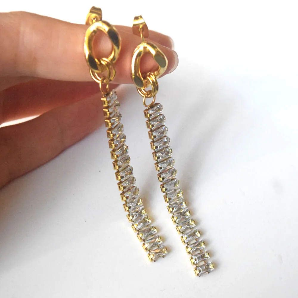 These tennis chain earrings are designed for two piercings. They are so trendy and cute! The vibrant...