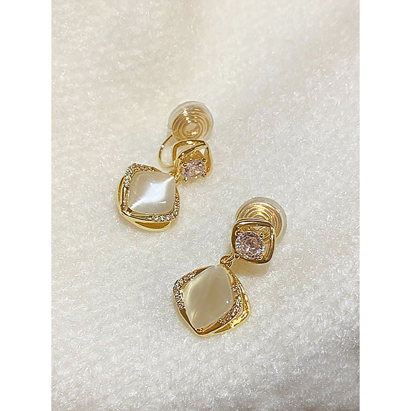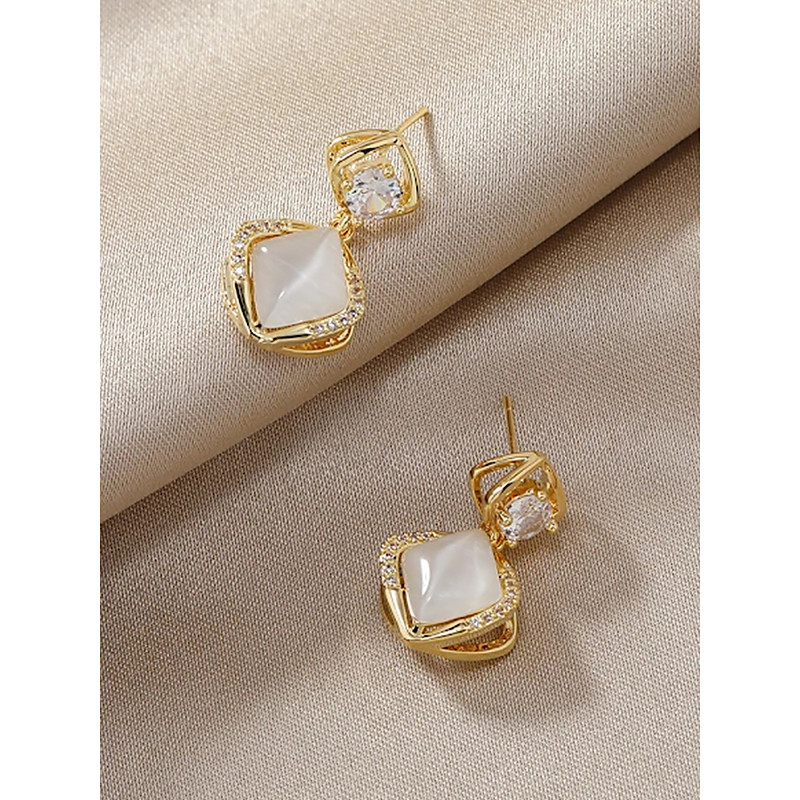 Women's Elegant Gold-Plated Drop Earrings with Cat's Eye and Zircon...