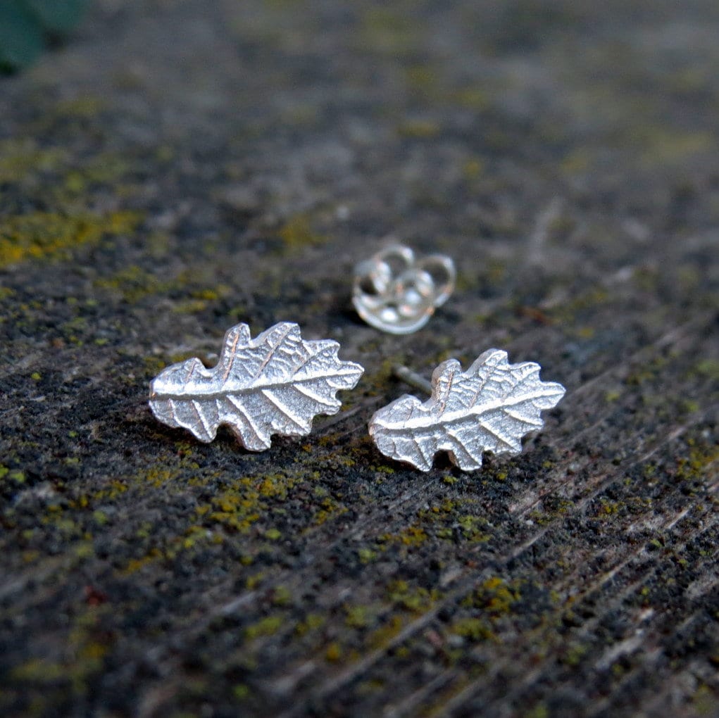 Oak Leaf Earrings / Tiny Autumn Leaf Studs / Mini Oak Leaves