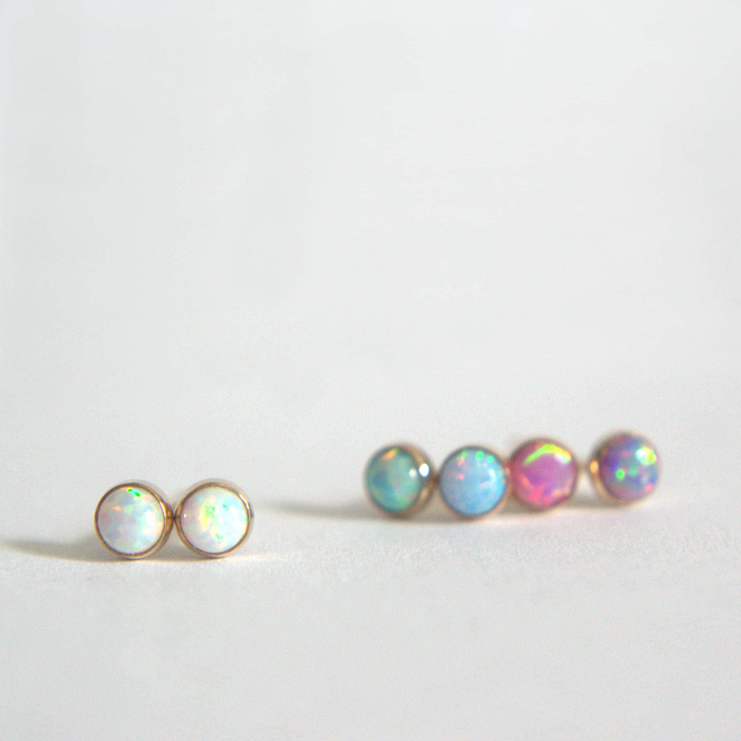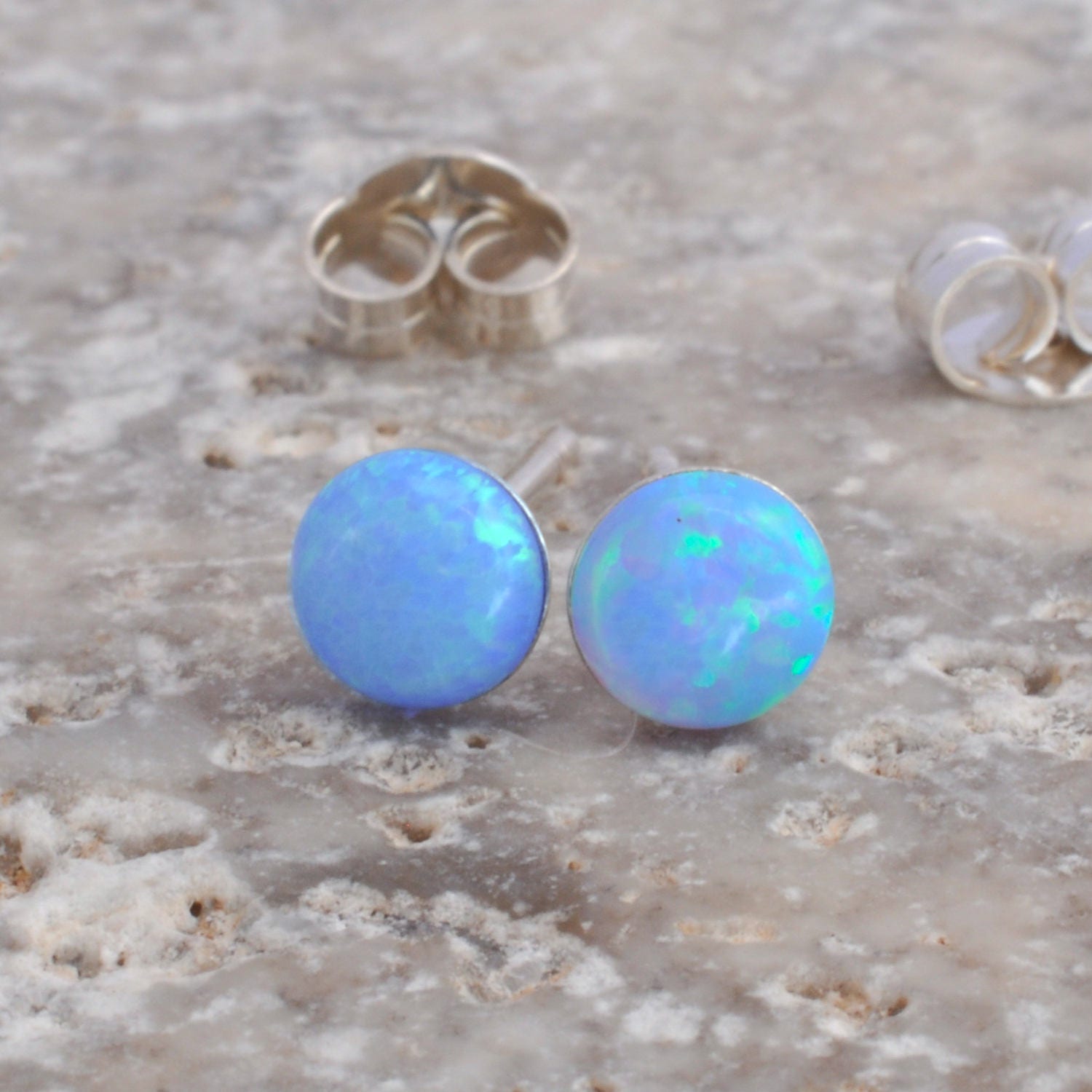 Opal Earrings, Opal Stud Earrings, White Opal Stud Earrings, Blue O...