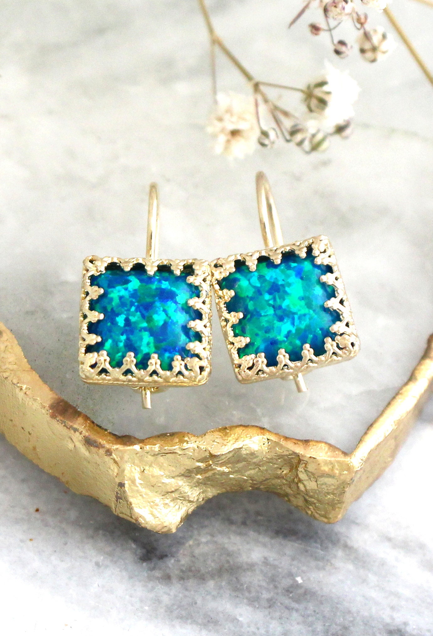 Opal Drop Earrings, Opal Stud Earrings, Opal Jewelry, Opal Dangle E...