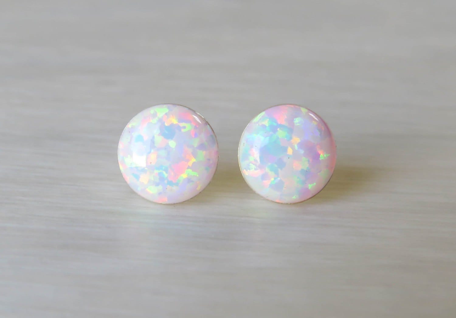 Opal Earrings, Opal Stud Earrings, Blue Opal Stud Earrings, White O...