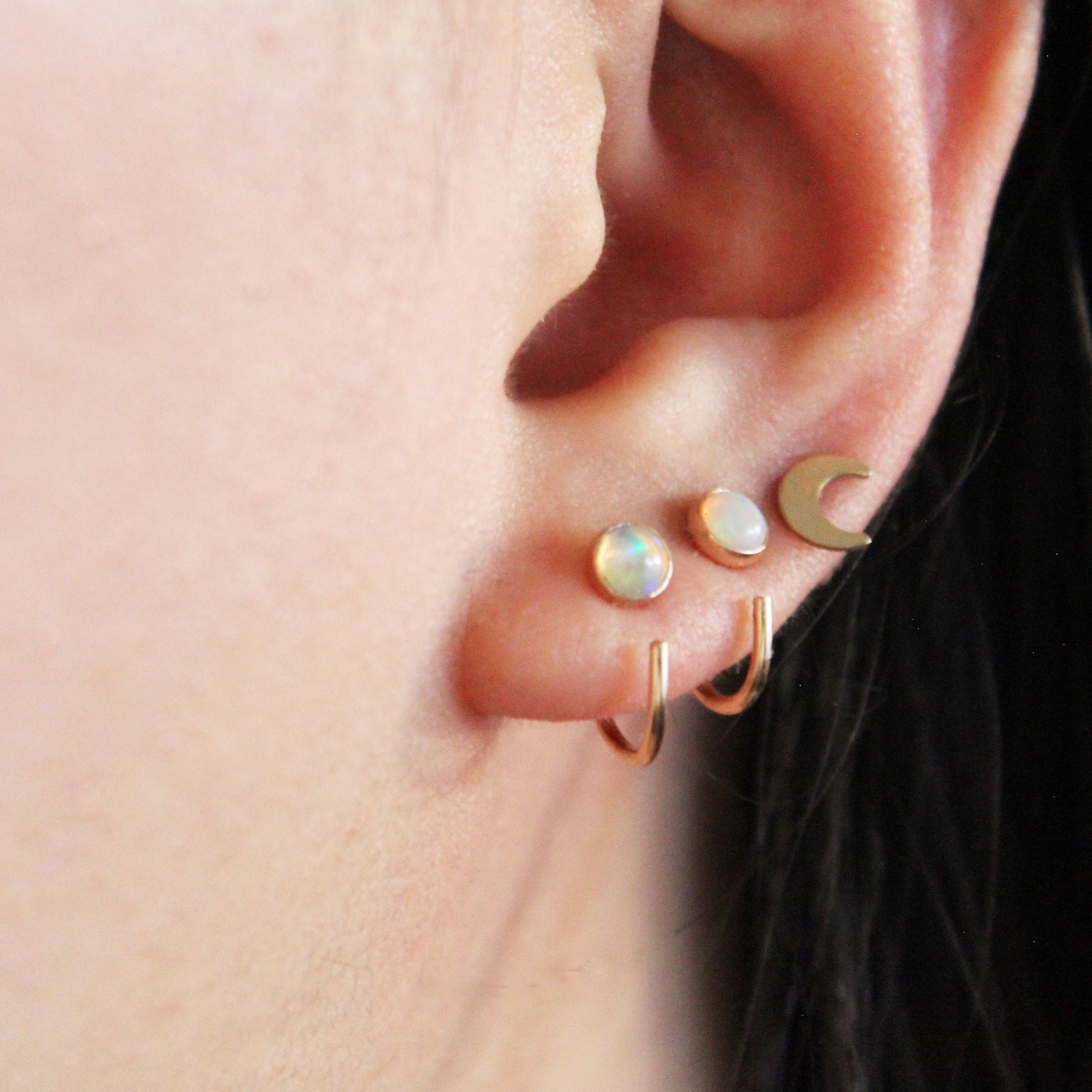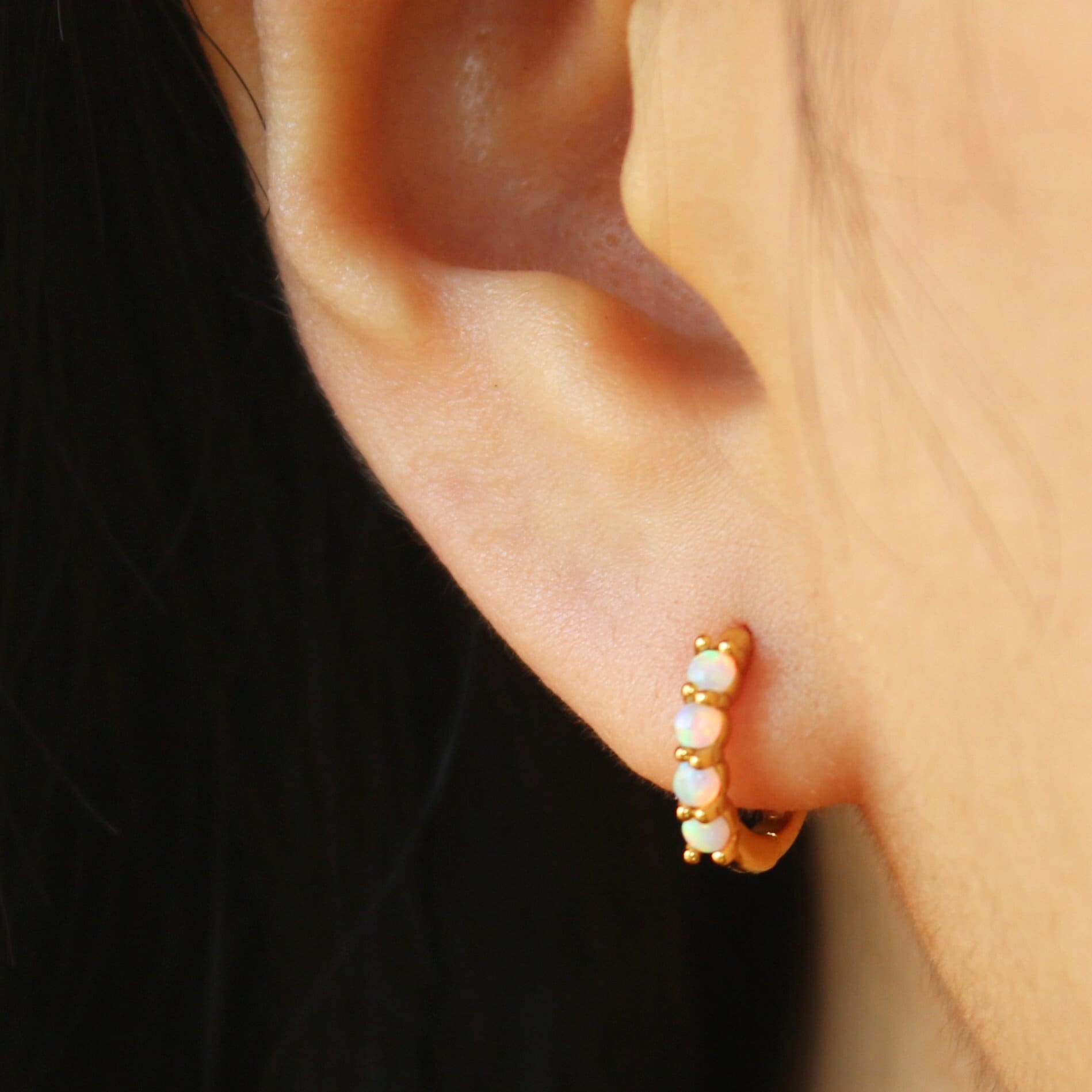 Opal Huggie Hoop, Opal Huggie Earring, White Opal Earrings, Gold Op...
