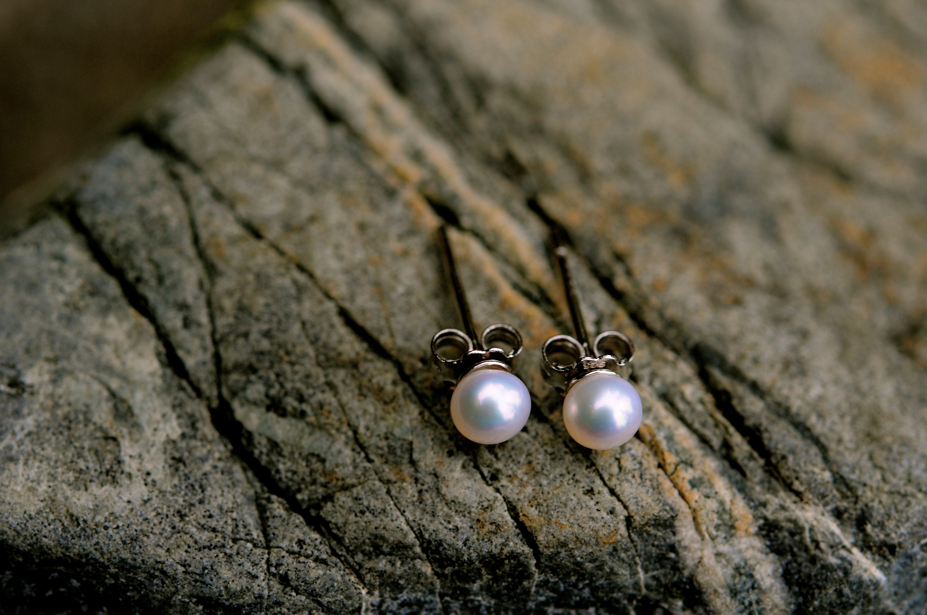 Small, delicate freshwater pearl stud earrings made of rhodium-plated silver. Classic and stylish. *...