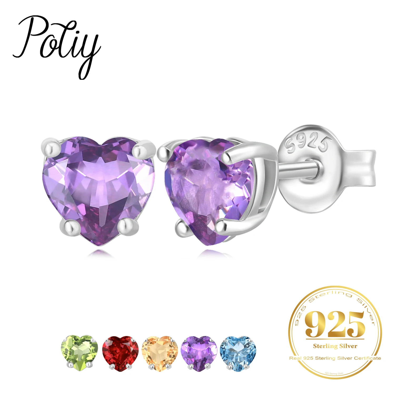 Potiy Natural Heart Citrine Peridot Amethyst Garnet Sky Blue Topaz Stud Earrings 925 Sterling Silver...