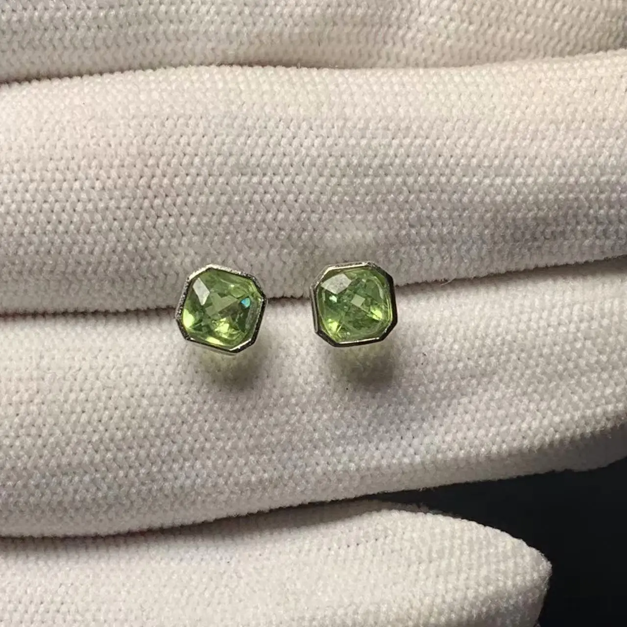 Natural Peridot 925 Sterling Silver Stud Earrings For Women Jewelry Gift Simple Peridot Jewelry Gree...