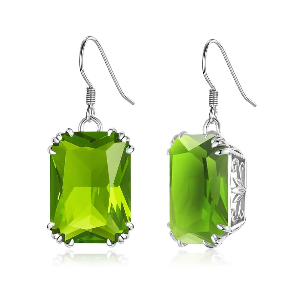Szjinao Green Sparkling Silver Earrings For Women Peridot Long Eari...
