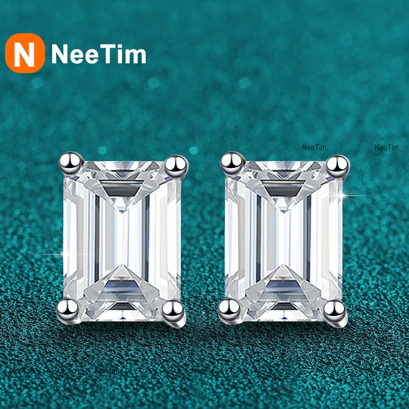 NeeTim 0.5CT 1CT 2CT Emerald Radiant Cut Moissanite Studs Earrings ...