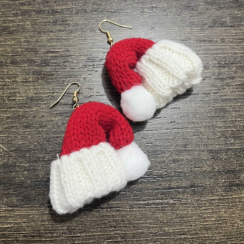 Knitted Santa Hat Christmas Earrings – Cute Red White Winter ...