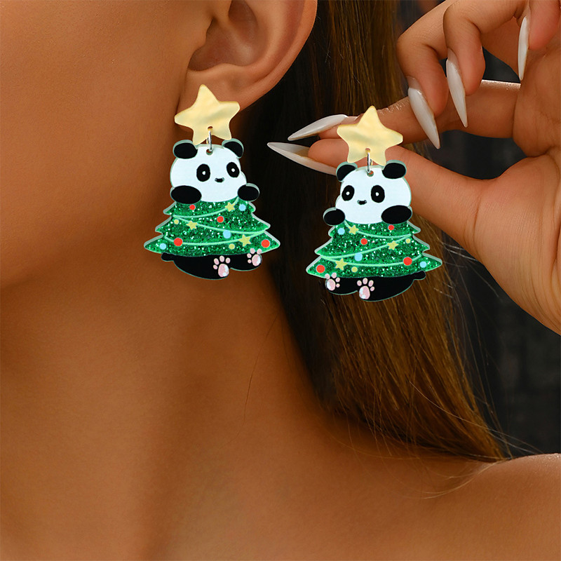 Christmas Panda Earrings with Glittery Christmas Tree Star - Cute H...