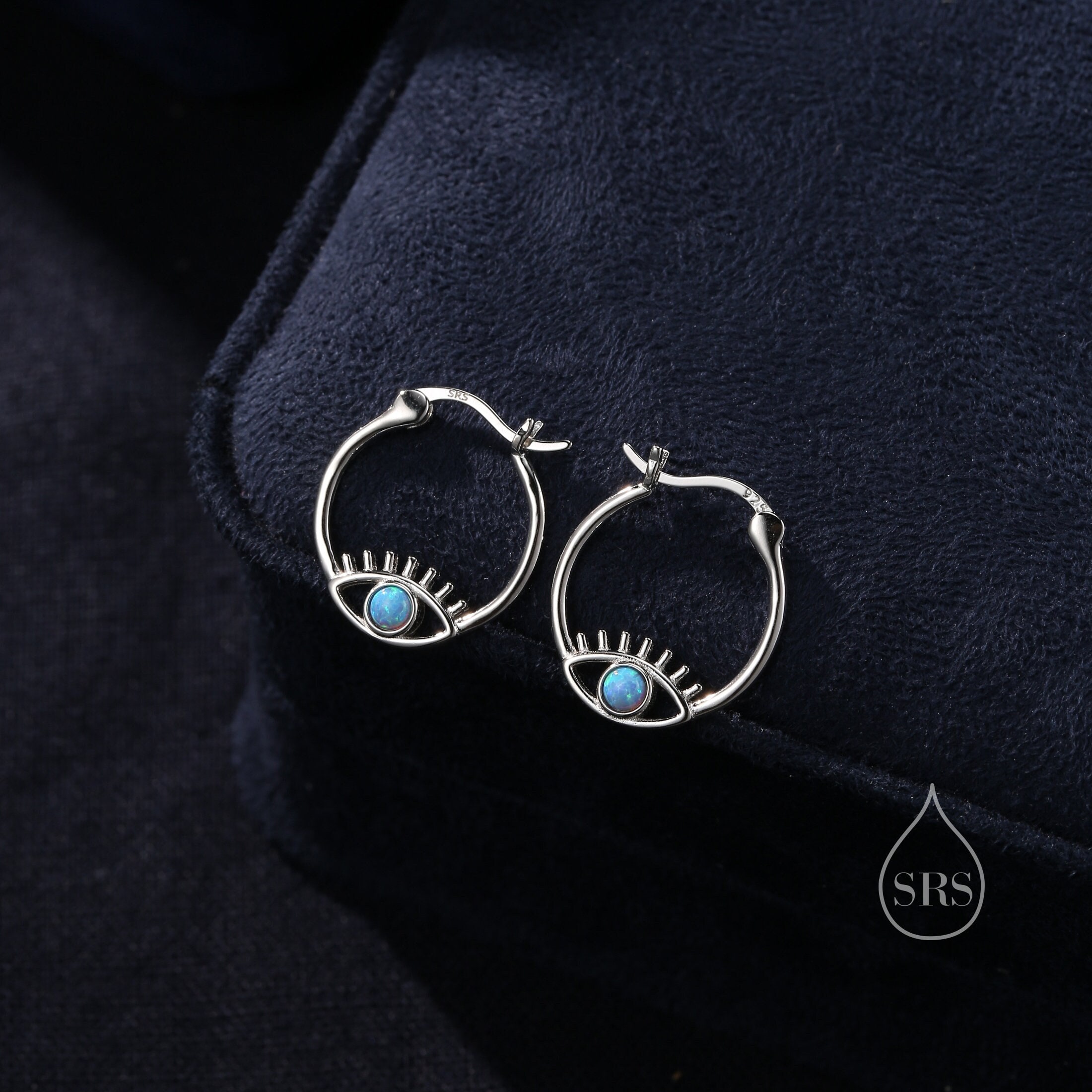 Blue Opal Eye Hoop Earrings in Sterling Silver, Silver or Gold Evil...