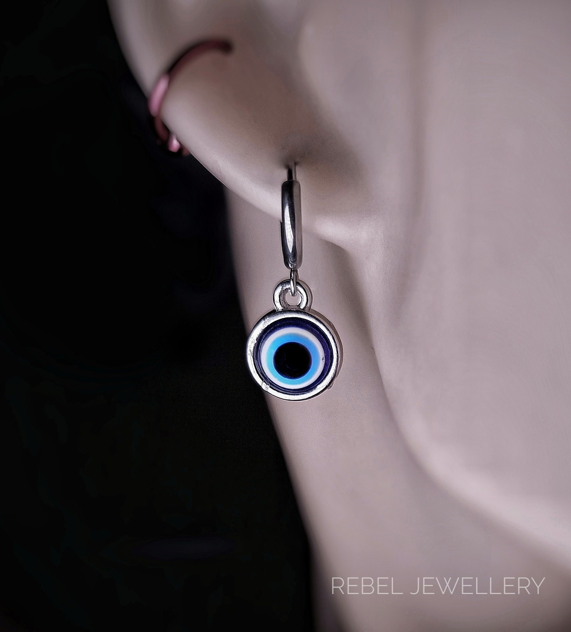 Evil Eye Hoop Earrings Silver Evil Eye Huggie Earrings, Evil Eye Da...