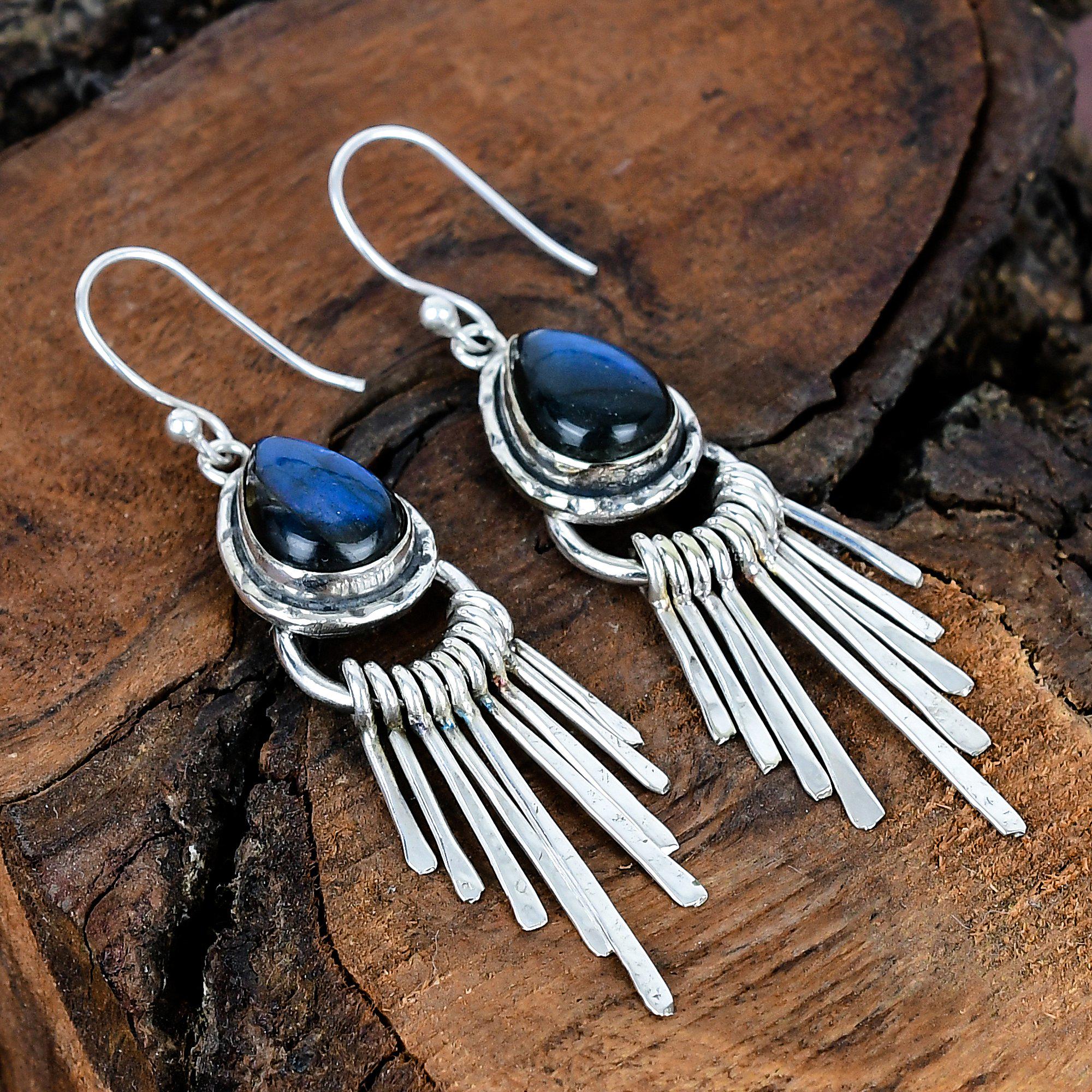 Labradorite Earrings Gemstone Silver Earrings Sterling Silver Earri...