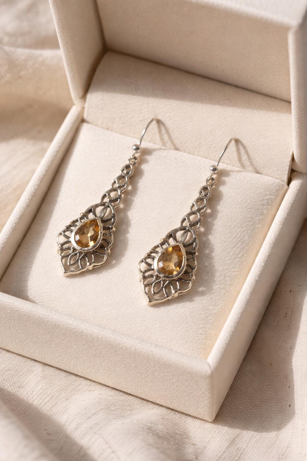 Citrine gemstone silver earrings * vintage silver earrings * 925 st...