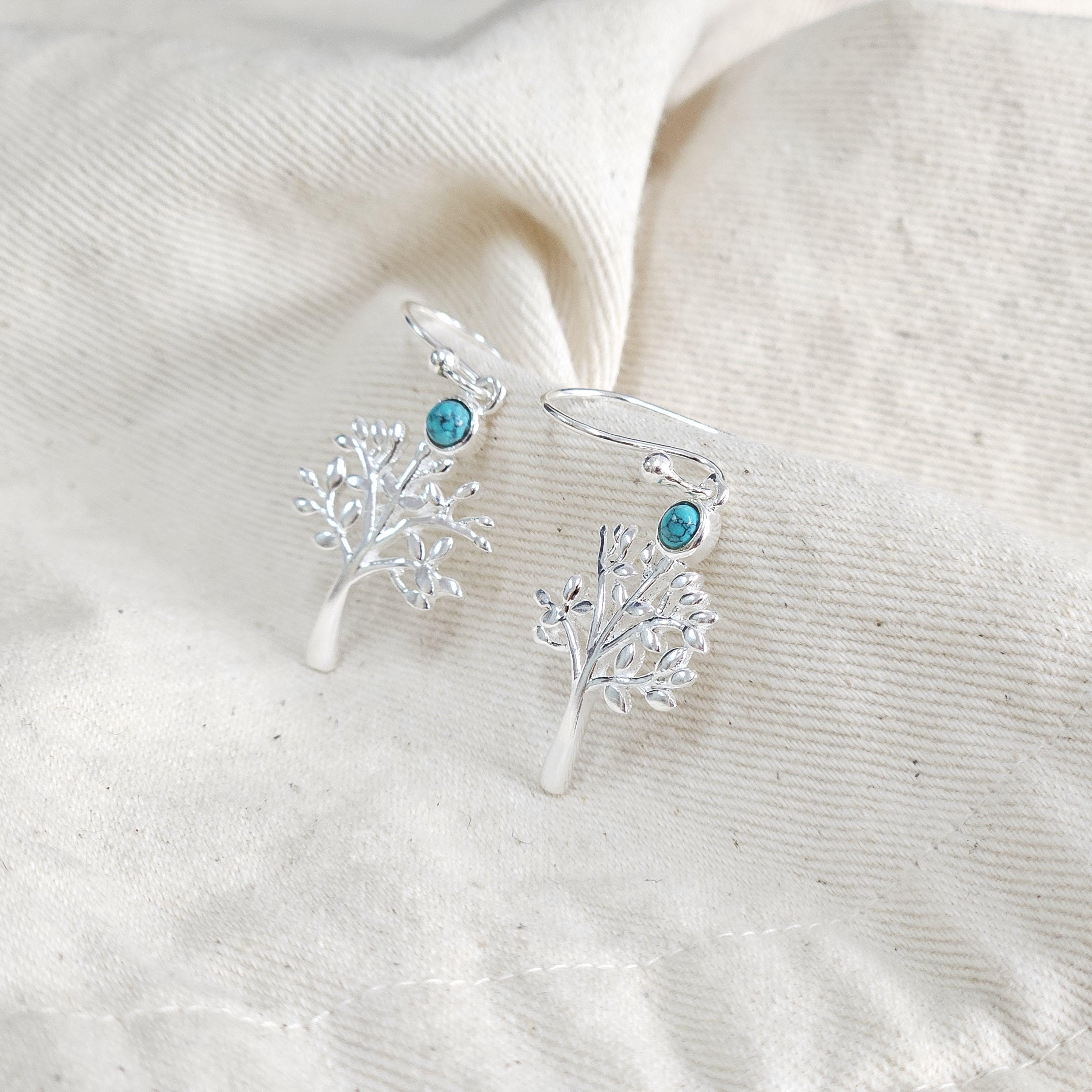 Turquoise gemstone silver earrings for women * Tree of life earring...