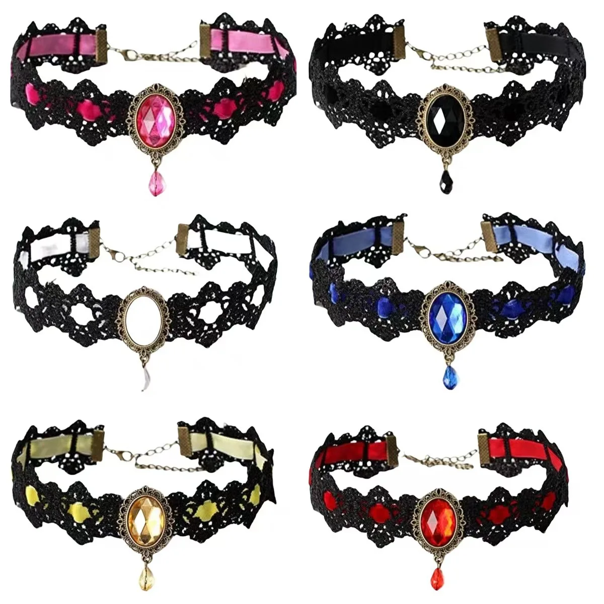 High Quality Velvet Chain Vintage 925 Silver Gemstone Necklace Pendant Chocker Necklace Earrings Par...