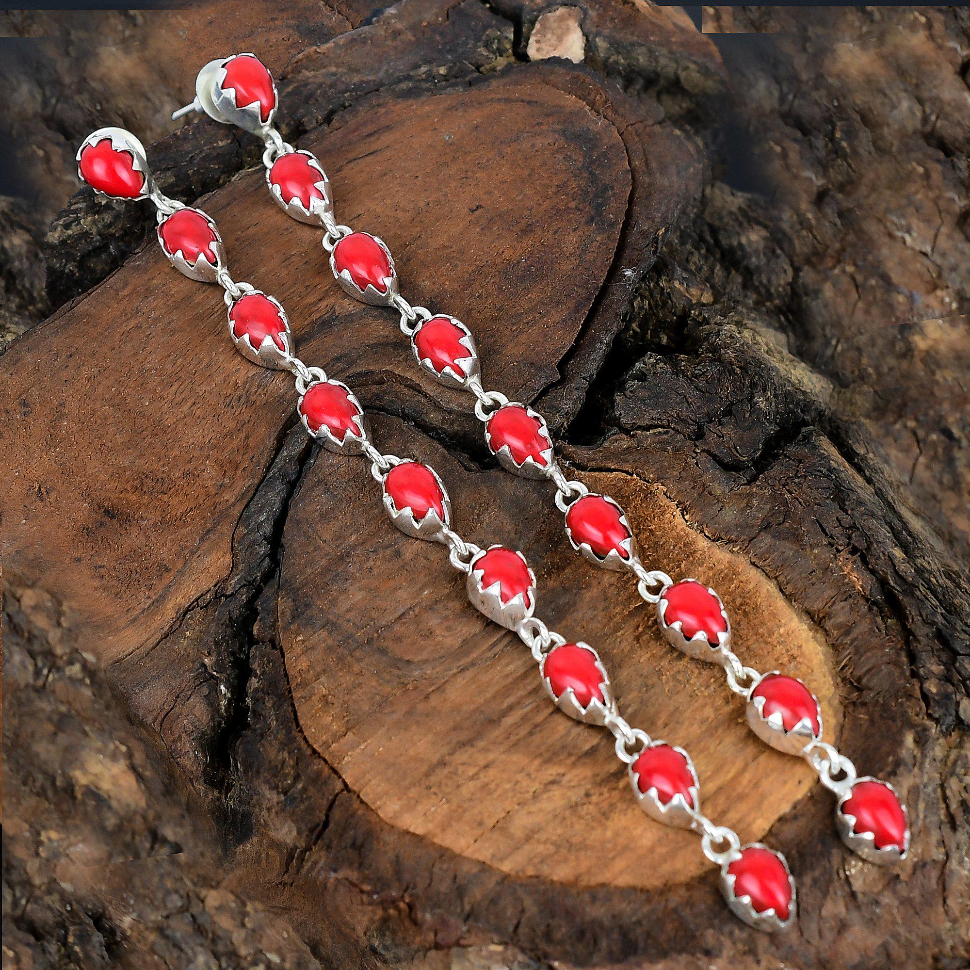 Red Coral Gemstone Handmade Sterling Silver Studs Coral Gemstone Si...