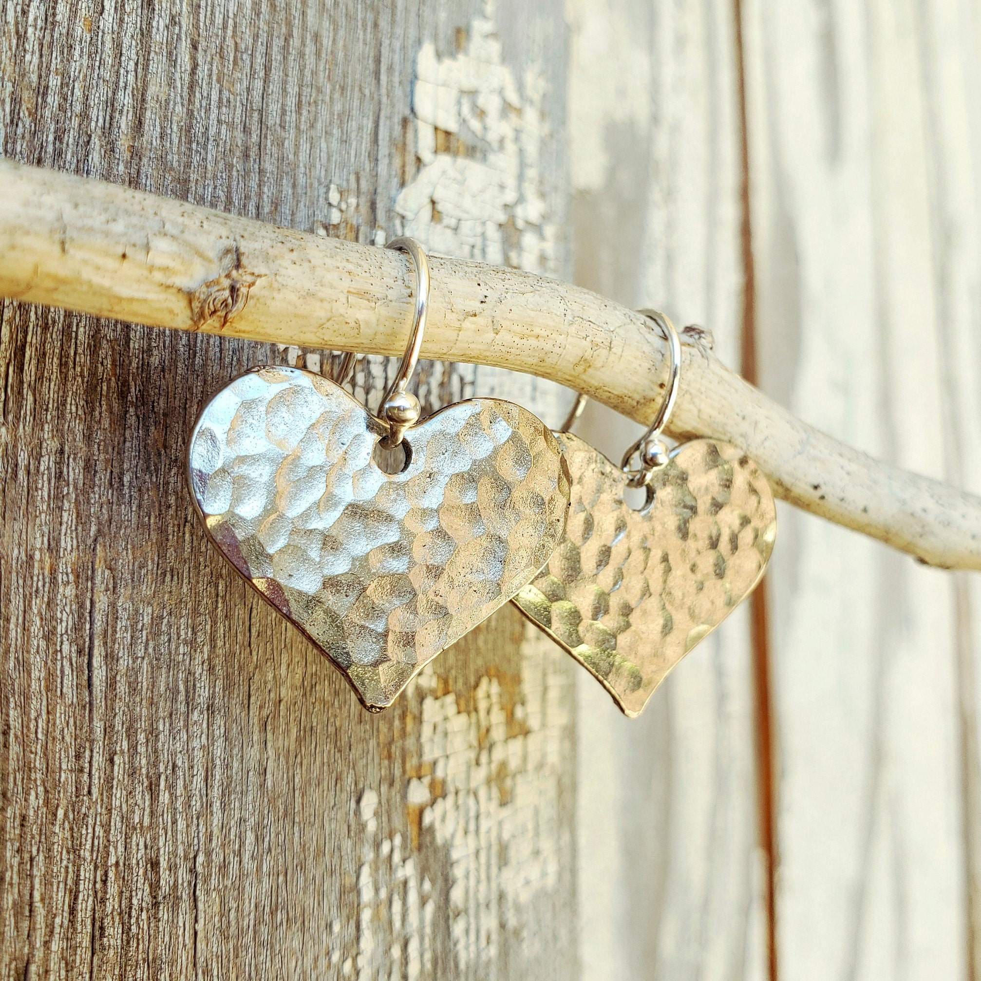 Hammered Sterling Silver Heart Earrings. Silver Heart Dangle Earrin...