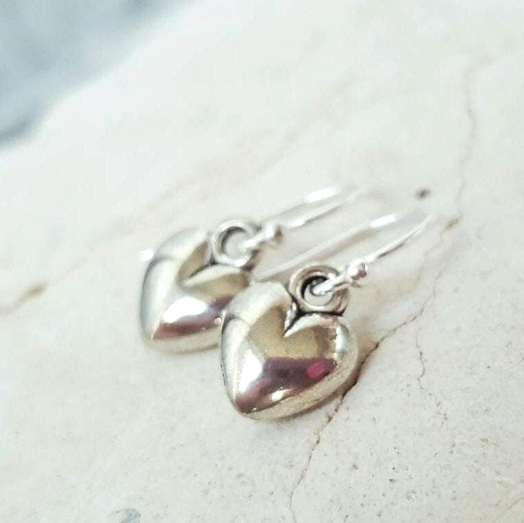 Sterling Silver Puffed Heart Earrings. Silver Heart Dangle Earrings...