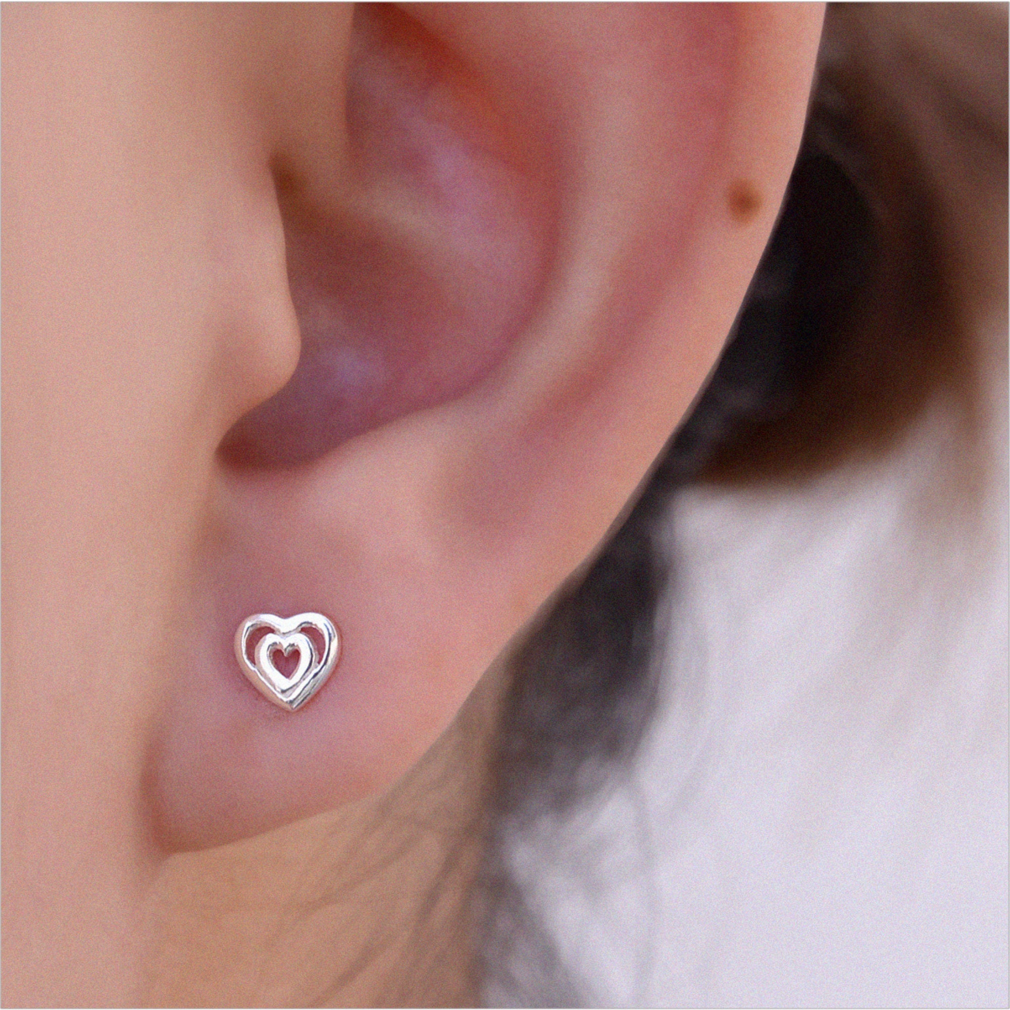 925 Sterling Silver Tiny Heart Stud Earrings, Heart Earrings, Heart...