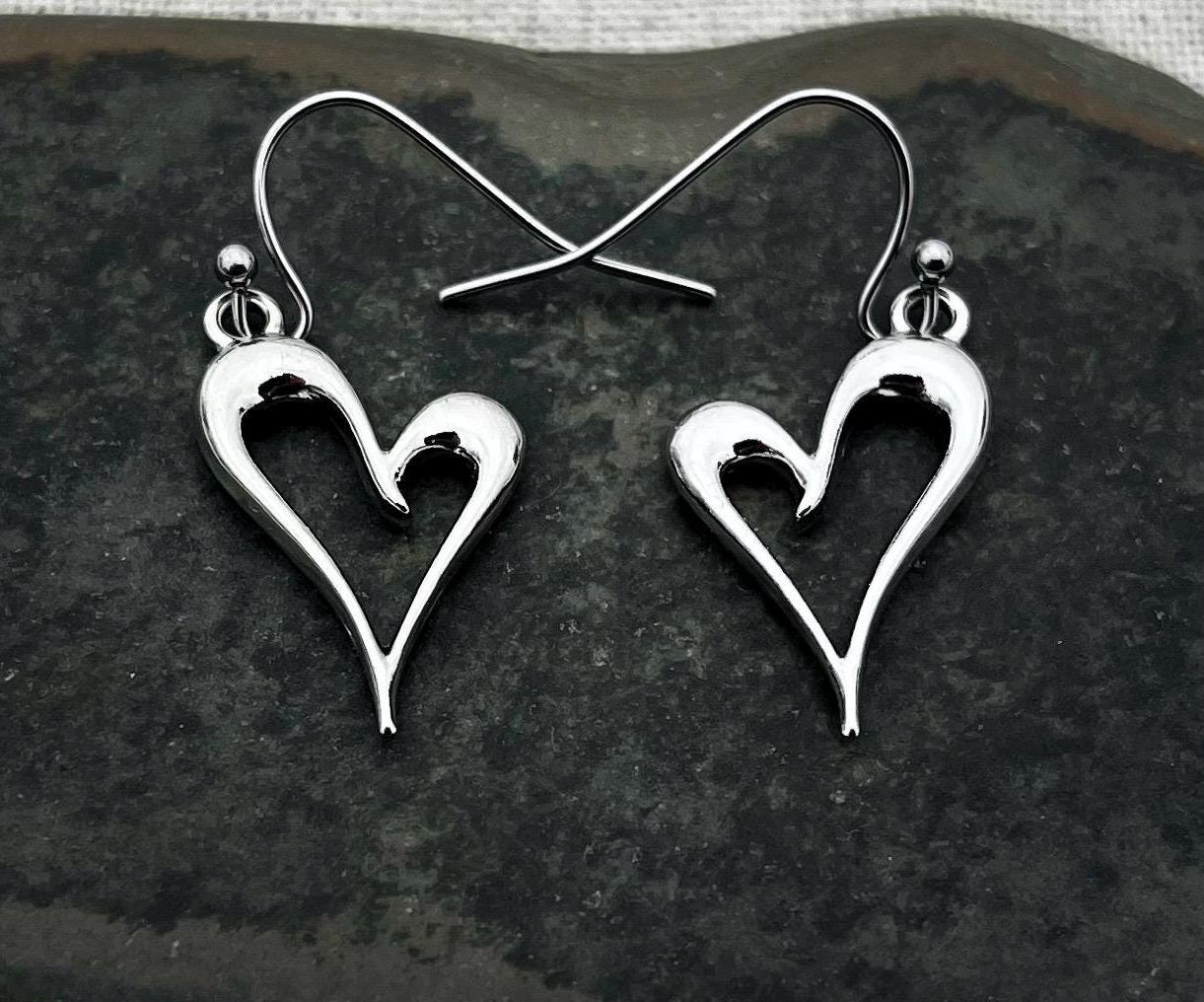 Whimsical Heart Earrings - Silver Heart Earrings - Heart Dangle Ear...