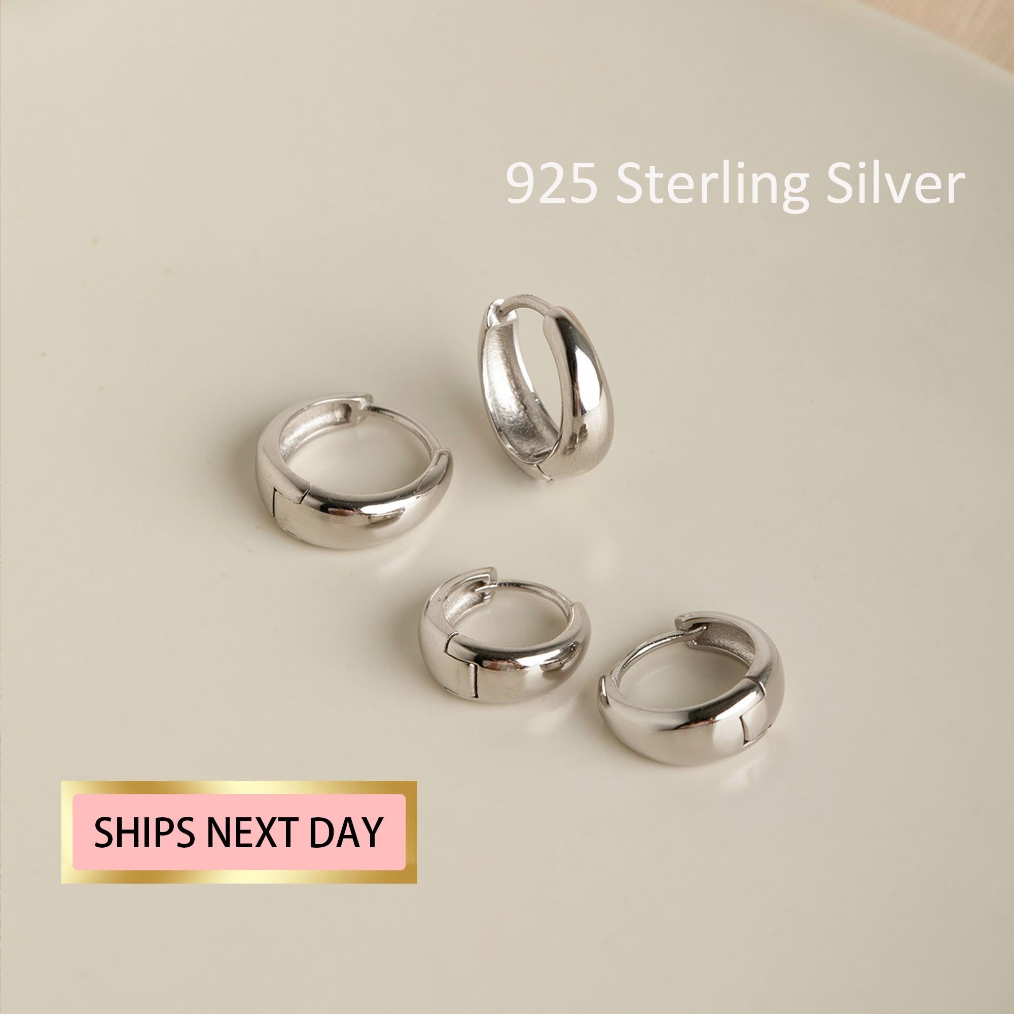 925 Sterling Silver 3 mm Thick Hoop Earrings, Silver Hoop Earrings,...