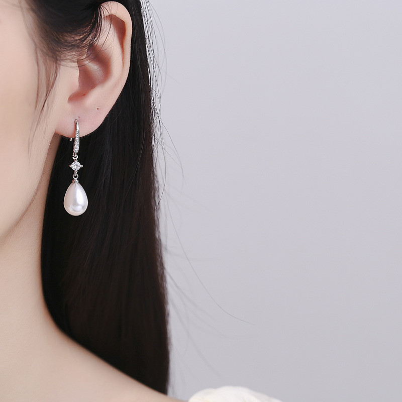imitation pearl drop earrings natural stone round bead dangle earri...