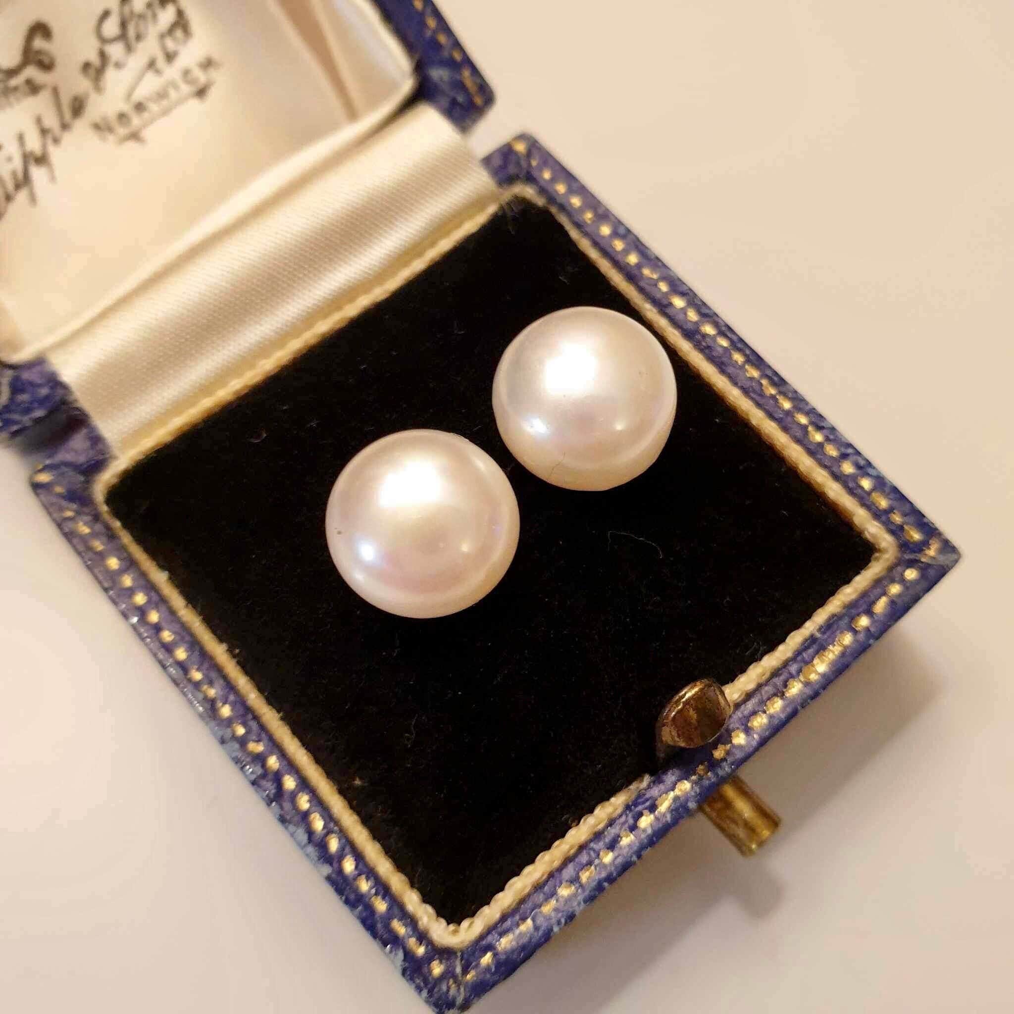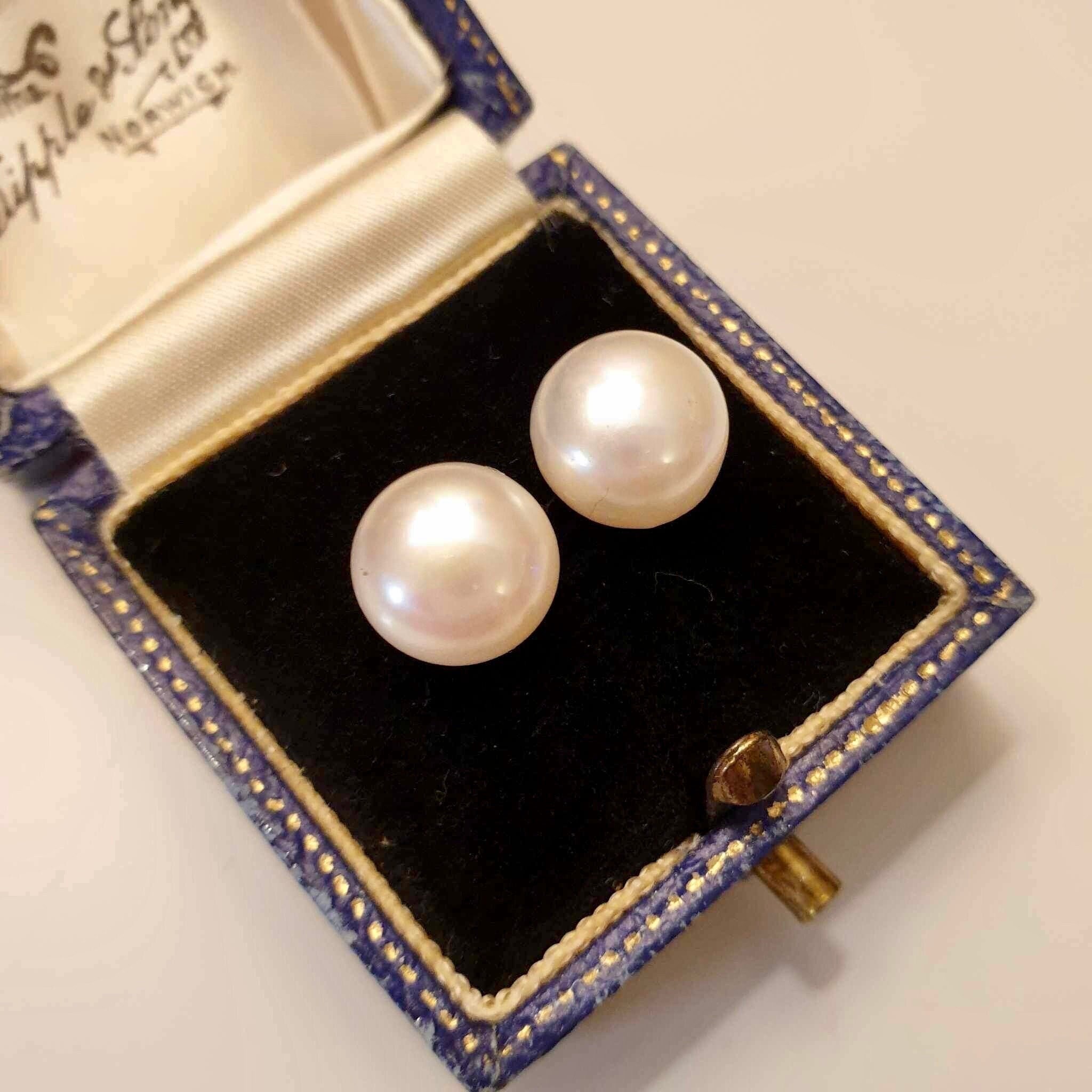 Large White Pearl Studs Silver Pearl Stud Earrings 925 Silver Pearl...