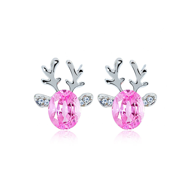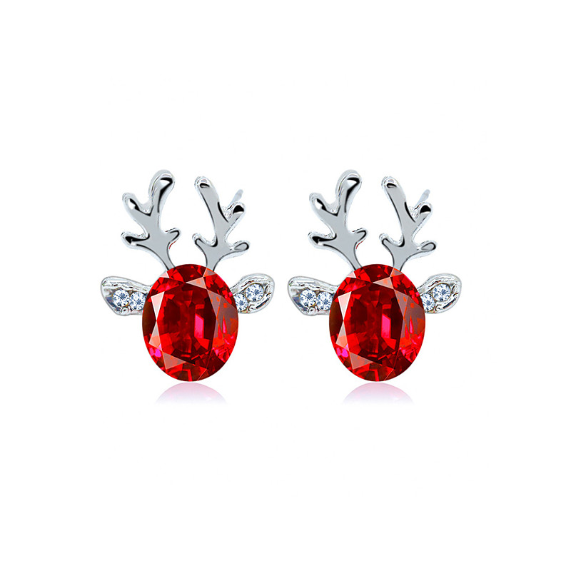 Women's Christmas Reindeer Earrings - Elegant Red Crystal and Silve...