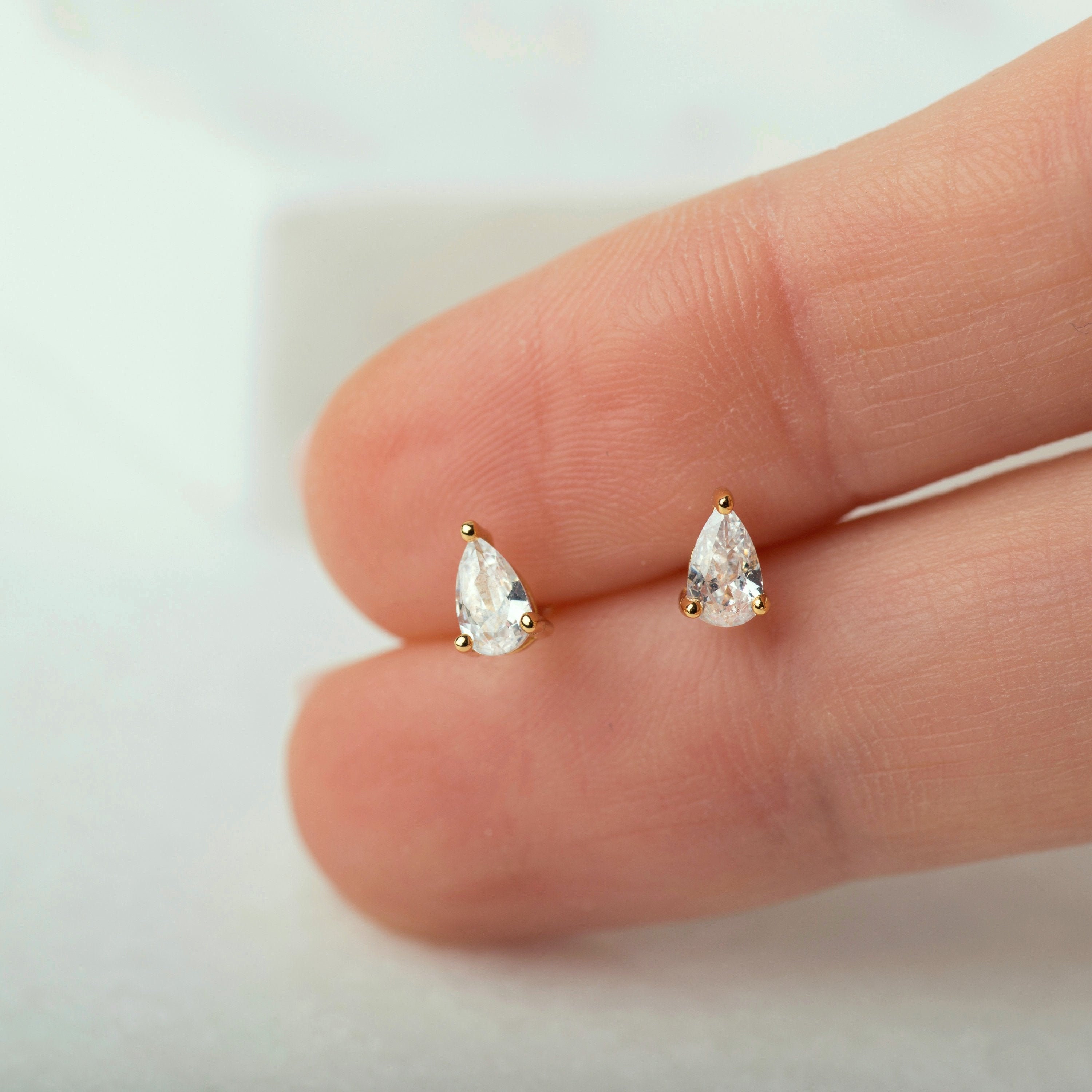 Gold teardrop studs - Gold stud earrings - Dainty gold earrings - S...