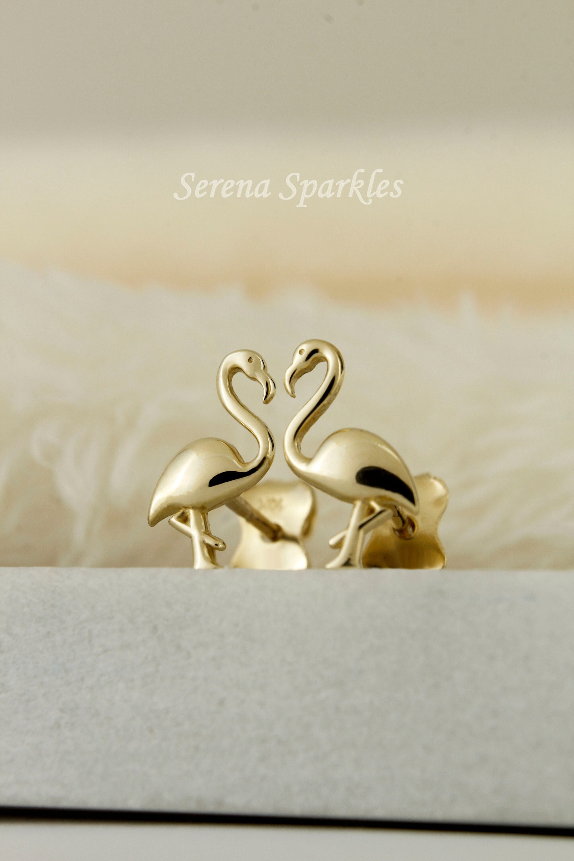 10k Solid Gold Dainty Ear Studs, Real Gold Stud, Flamingo Earring, ...
