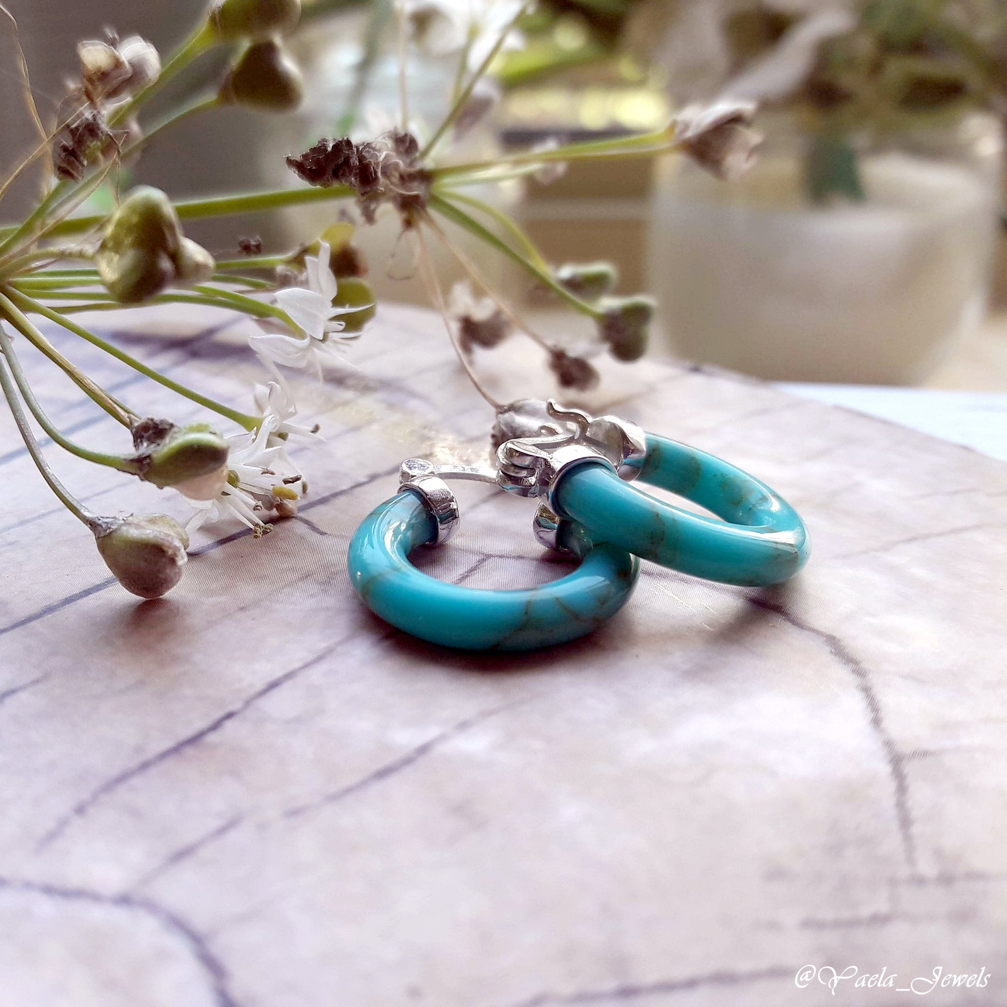 Turquoise Hoop Silver Earrings, Small Silver Hoop Earrings, Simple ...